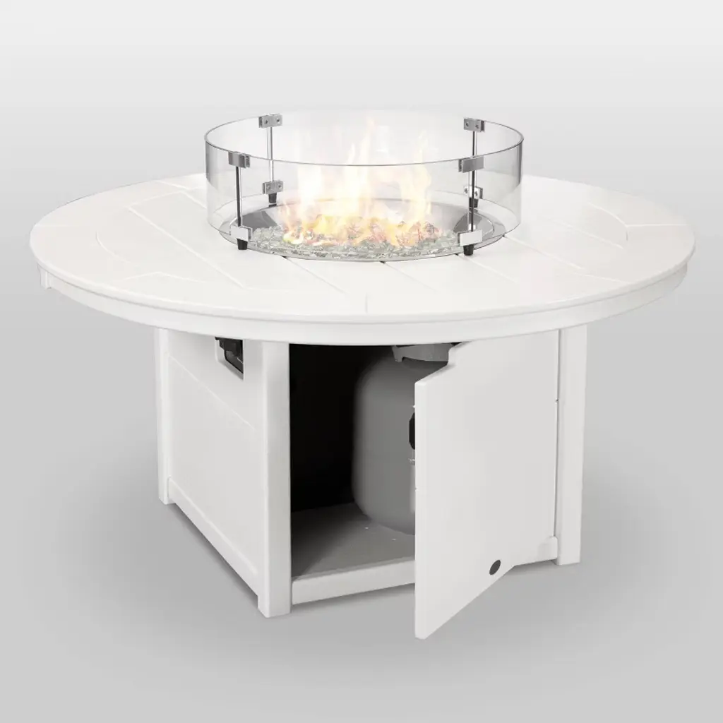Polywood Round 48" Outdoor Fire Pit Table - White: Weatherproof & Uv-resistant, 55k Btu, Propane Gas
