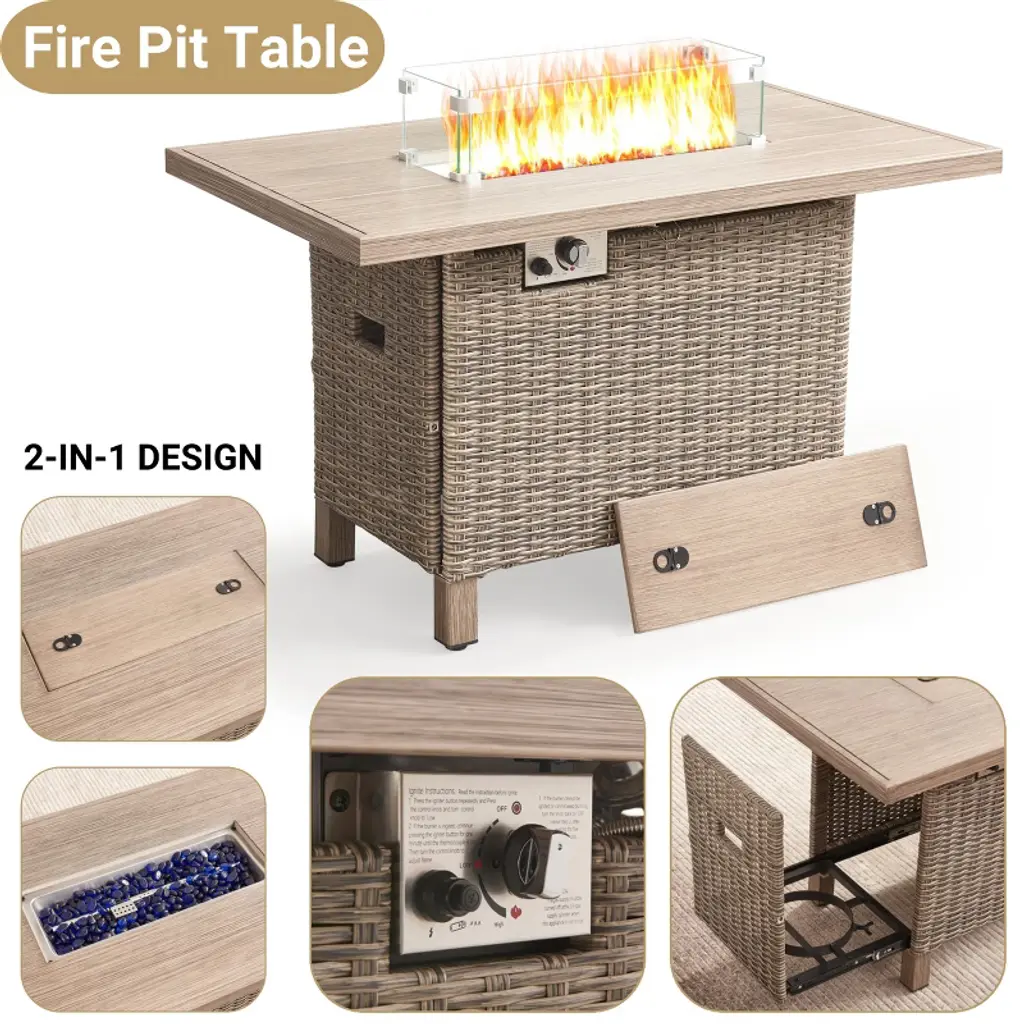 Probe Hues 55,000 Btu Propane Outdoor Fire Pit Table With Safe & Easy Ignition