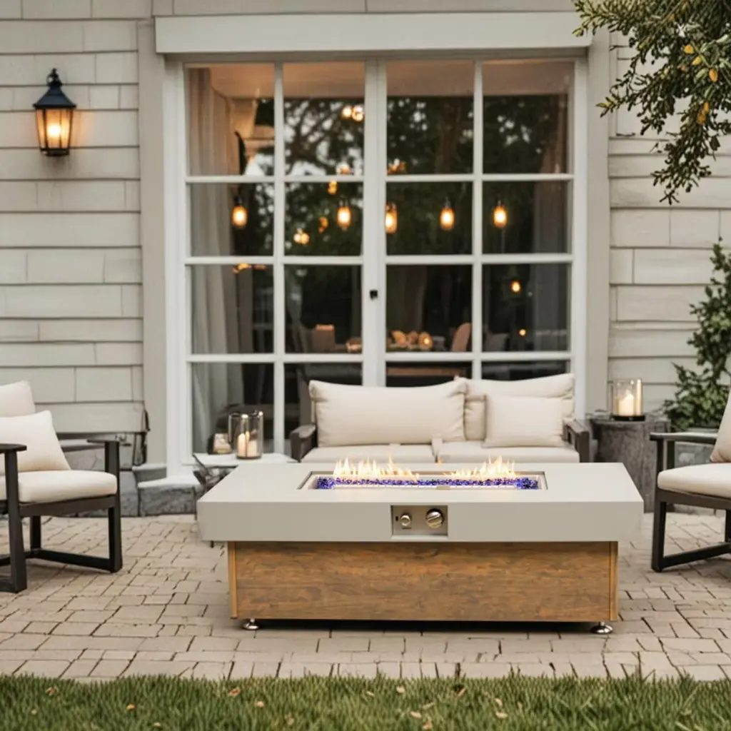 The Racxily 48-Inch Iron Fire Pit Table features a spacious design with a stylish wood grain finish, combining rustic charm with modern durability. Made from sturdy iron, it offers long-lasting performance for outdoor use on patios, decks, or in gardens. The large tabletop provides ample space for drinks and snacks, making it ideal for gatherings. Easy ignition and stable flame create a warm, inviting atmosphere. Both functional and decorative, this fire pit table is perfect for elevating any outdoor living space.