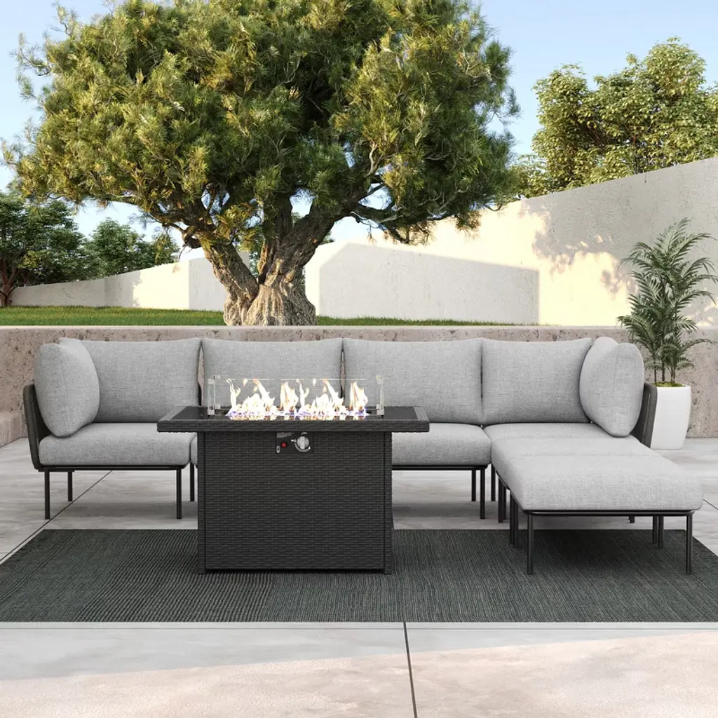 Create a welcoming outdoor space with this rectangular fire pit, crafted from durable concrete in a sleek modern style. Delivering 50,000 BTU of warmth, it provides a perfect centerpiece for entertaining guests, relaxing evenings, and cozy gatherings under the stars.