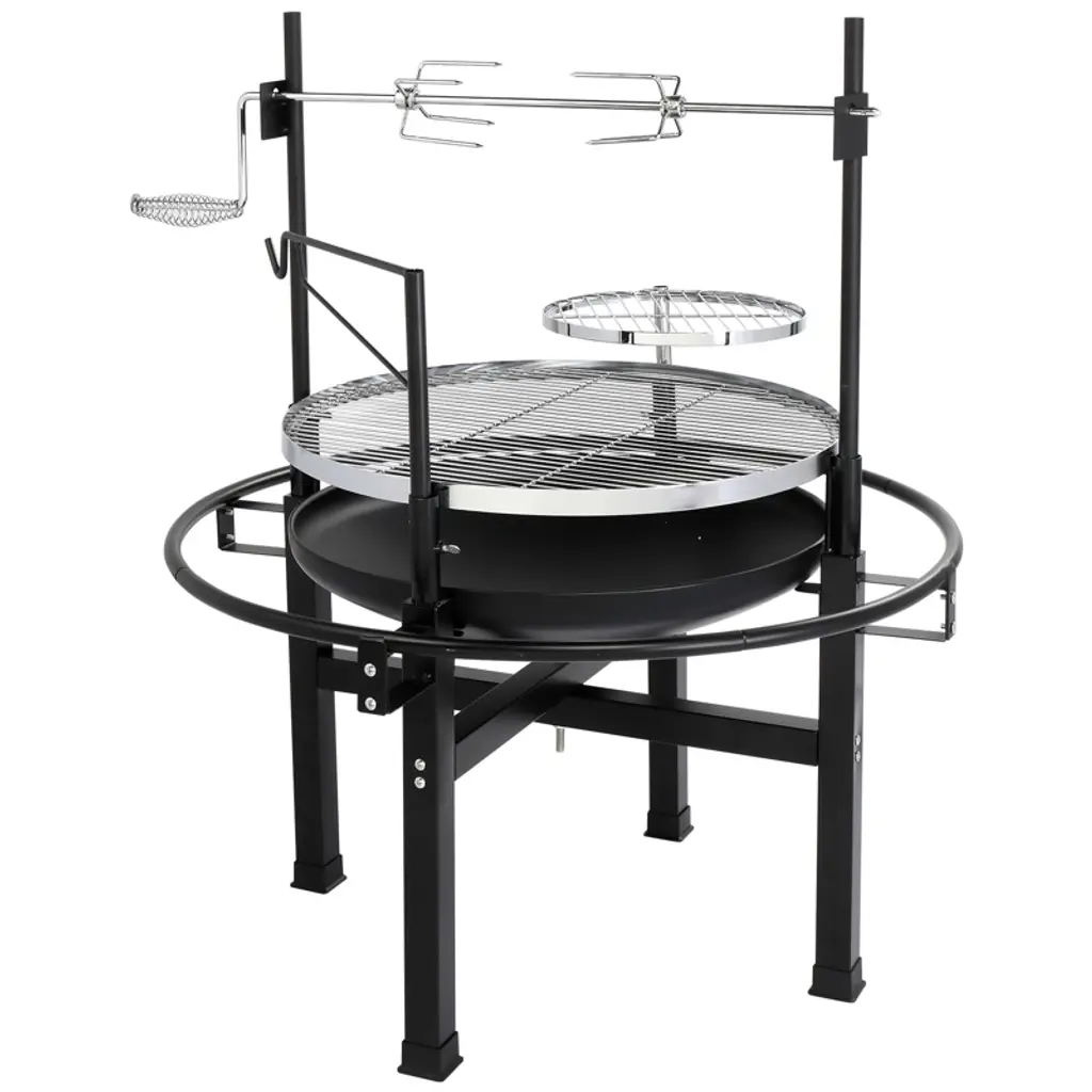 ROVSUN 33" Outdoor Fire Pit with 2 Grills – Perfect for backyard gatherings or camping trips! This wood-burning fire pit features a swivel cooking grate for adjustable heat control and a removable grill for versatile cooking. Enjoy grilling, roasting, or simply warming up by the flames. Durable steel construction ensures long-lasting use. Compact yet spacious, it’s ideal for BBQ, bonfires, and outdoor fun!