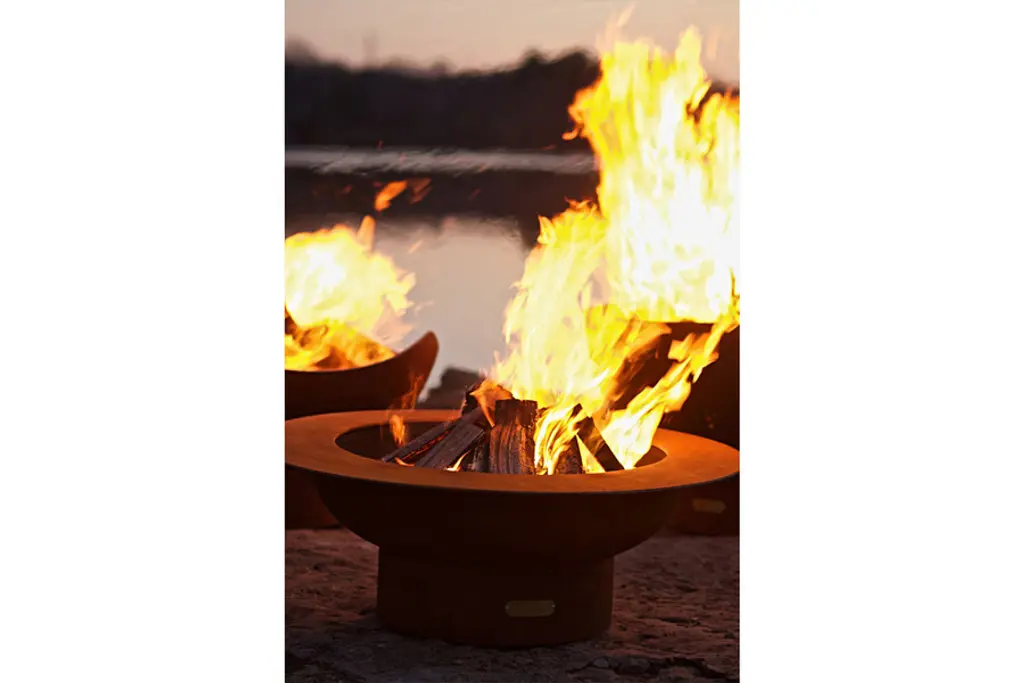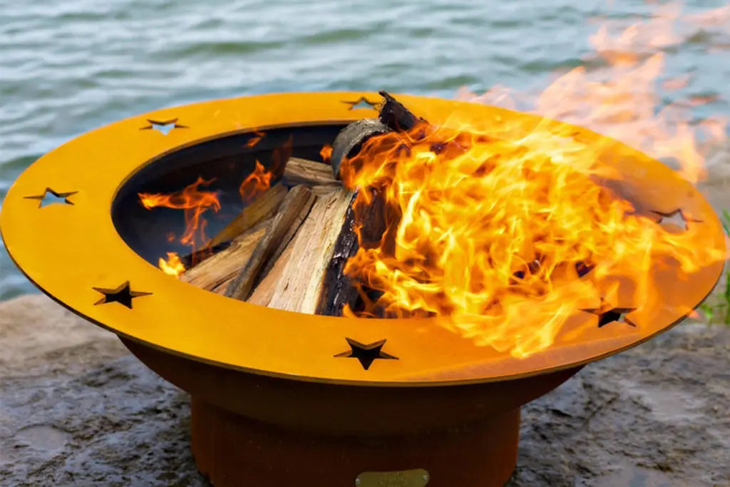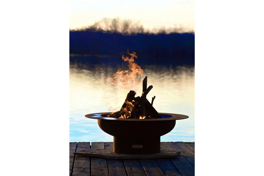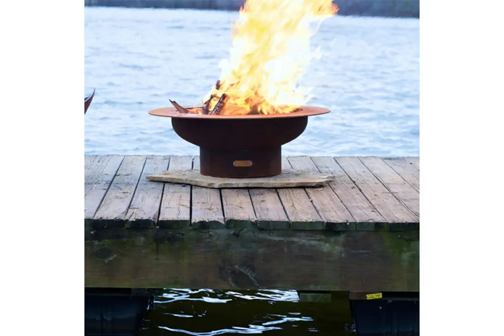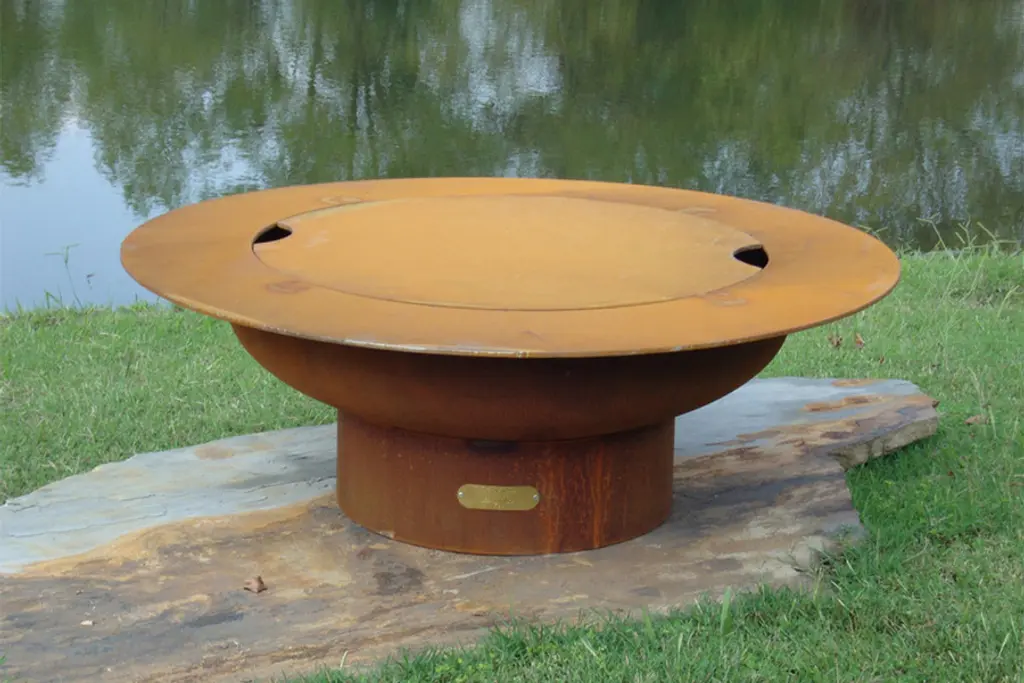 Saturn is perhaps the most majestic of the planets, with its gorgeous rings that seem to hang in the galaxy effortlessly and eternally. The Saturn Fire Pit by Fire Pit Art will sit in your yard or deck just as majestically, awaiting the touch of flame for all time. The ring on the pit serves as a convenient spot to hold beverages or relax a tired foot after a long day. The entire unit is made out of heavy duty steel, with an iron oxide patina that will darken over time. Literally set this and forget it, as the built in rain drain, heat-resistant coating, and lifetime guarantee are all weather-friendly options to set your mind at ease. Each piece is uniquely hand-crafted, much like the heavenly bodies in our solar system. The optional lid also serves as a nice place for cocktails when the fire pit is not in use.