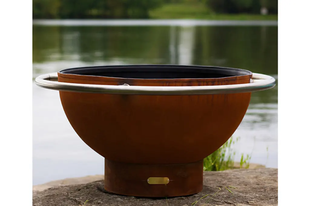 Sometimes a simple suggestion packs more stylistic punch than an overt statement. The Scallops Fire Pit by Fire Pit Art may not directly have cutouts of animals and landscapes within it, yet the gentle rolling teeter-tottering of the scalloped edges reminds us of a harmonious imbalance of the universe or more simply, the ocean. Each piece created is uniquely shaped and then numbered and tagged with a brass plaque for quality. The unsurpassed construction is made of heavy duty steel coating in an exterior zinc oxide patina. This patina will turn a few shades darker throughout the years until settling into a beautiful rustic glow. The rain drain is already built in, so feel free to leave this be when not in use, it will take care of itself.