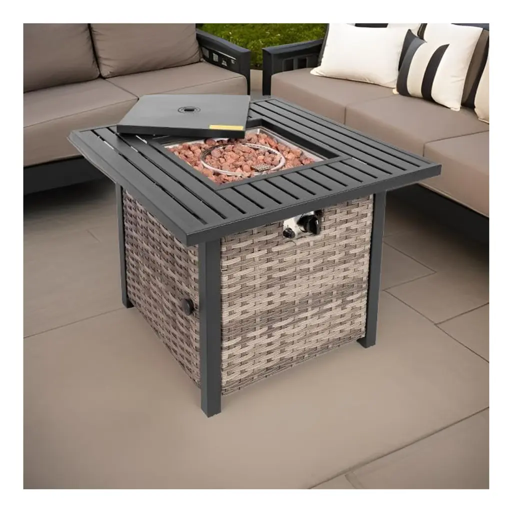 This tabletop firepit is the perfect size for outdoor events, measuring 30 inches in length, 30 inches in width, and 25 inches in height, providing ample space for drinks and snacks while fostering a relaxing ambiance. Each unit is rigorously tested to meet high safety standards and is CSA-certified for user ease; simply connect a propane tank (not included), secure it on the metal stand, and enjoy the warmth. The package includes lava rocks, a lid, burner cover, fire pit cover, and a metal stand for securing your propane tank. Offering a hassle-free alternative to traditional wood-burning fire pits, this model allows you to easily adjust the flame from low to high without dealing with smoke or ash, capable of producing up to 50,000 BTU to keep your surroundings warm. Constructed from strong, high-quality metal, the fire pit boasts durability and weather resistance, making it both a practical and stylish addition to any outdoor space. Its sleek design complements any patio decor, transforming your outdoor area into a cozy retreat perfect for gatherings or quiet evenings under the stars.