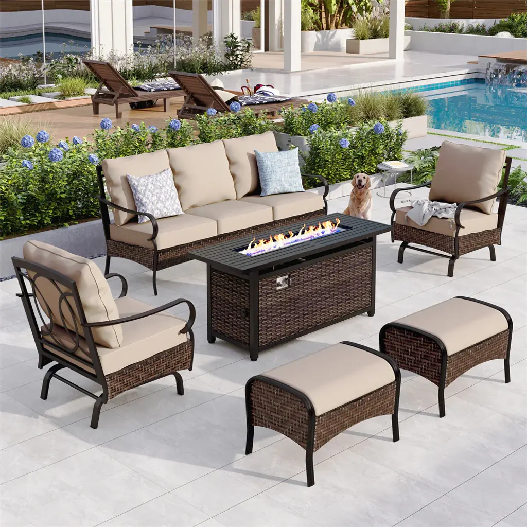 Sophia & William 7-Seater Rattan-Steel Luxurious Outdoor Sofa Set With 56" Fire Pit Table