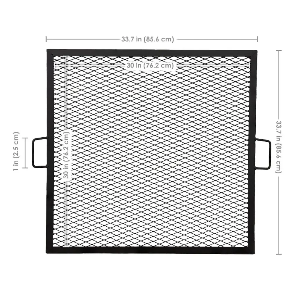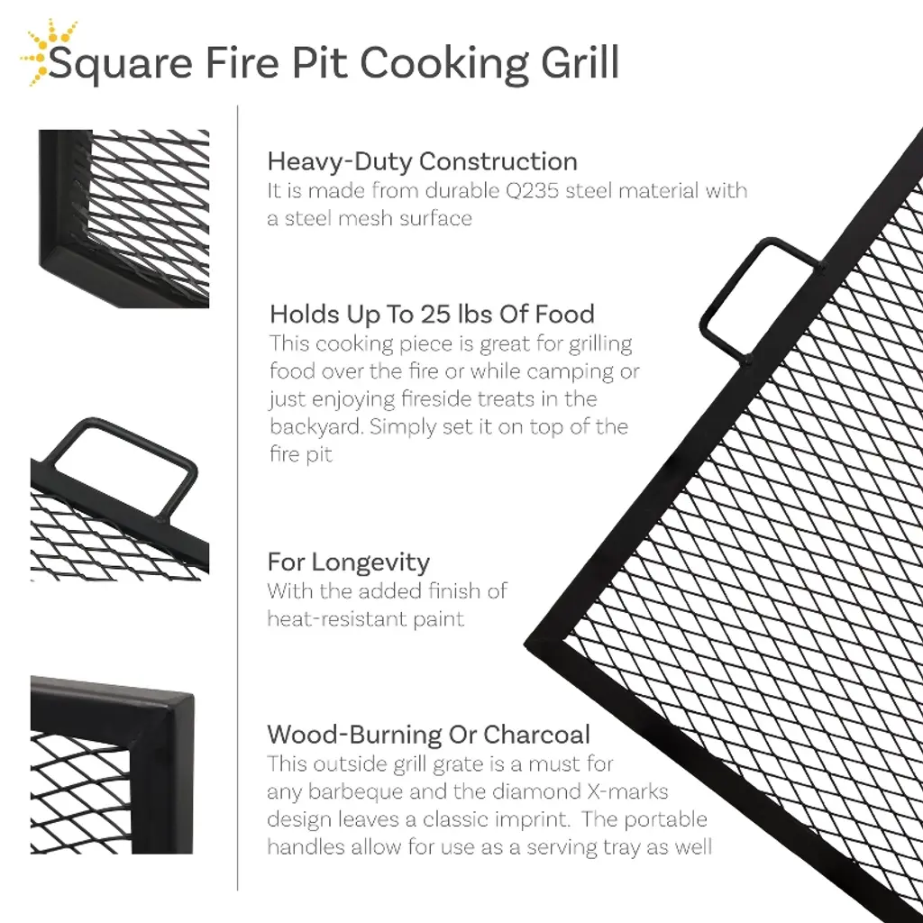 This heavy-duty square mesh steel fire pit cooking grate and is perfect for camping and more. Cook all the campfire food the heart desires with this square fire pit cooking grill. The grill is square-shaped making it perfect for square fire pits, and it is made from durable Q235 steel material with a steel mesh surface to allow food to cook evenly. Plus, the handles on the sides and the raised edges makes it easy to maneuver and keeps food sliding off into the flames. !!! -------------------- For California Residents -------------------- !!! WARNING: This product can expose you to chemicals including Benzene, which is known to the state of California to cause cancer and birth defects or other reproductive harm. For more information go to www.P65Warnings.ca.gov