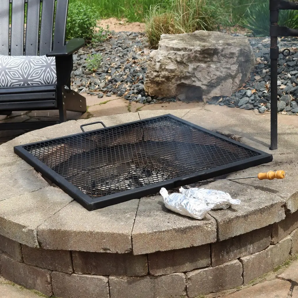 Sunnydaze Outdoor Camping Or Backyard Heavy-duty Steel Square X-marks Fire Pit Cooking Grilling Grate - 40"