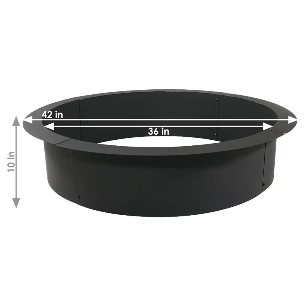 This fire pit ring insert can be used as the foundation of an in-ground fire pit that is great for getting together with friends on cool fall nights or family events after a long, summer day. Place this fire pit rim in the ground and backfill the dirt around the outside for a stylish in-ground fire pit, or place this rim above ground and surround the edges with bricks or stones for a DIY fire pit that is sure to complement any existing aesthetic. Once finished, place the wood inside the rim and light the fire. Either option gives the look of an appealing homemade fire pit. Plus, this versatile fire pit ring insert is an affordable way to add a personal touch to any backyard space.• GREAT SIZE FOR GATHERINGS: This outdoor fire pit ring is large enough for many people to gather around a fire in the backyard or campground. It measures 36" inner diameter (42" outer diameter) x 10" H and weighs 29 lbs, making it easy to move around the yard.• BUILT FOR SAFETY AND STABILITY: This round heavy-duty fire pit insert is made of sturdy steel and finished with a high-temperature paint to ensure long-lasting quality and functionality for all weather types and higher resistance to rust.• EASY TO ASSEMBLE: This large 4-piece metal fire pit liner insert is easy to put together and assembles in minutes (NOTE: There is no bottom to this fire pit liner).• VERSATILE AND CUSTOMIZABLE: Whether building a rustic stone fire ring or a sleek modern setup, this fire pit kit provides a solid foundation. Because it can either be used in-ground or above-ground, it seamlessly fits a DIY or pre-built design, providing complete creative freedom for the ultimate backyard upgrade. Add a personal touch by placing landscape pavers (not included) around the fire ring.• WORRY-FREE PURCHASING: Sunnydaze Decor backs its products with a 1-year manufacturer's warranty.