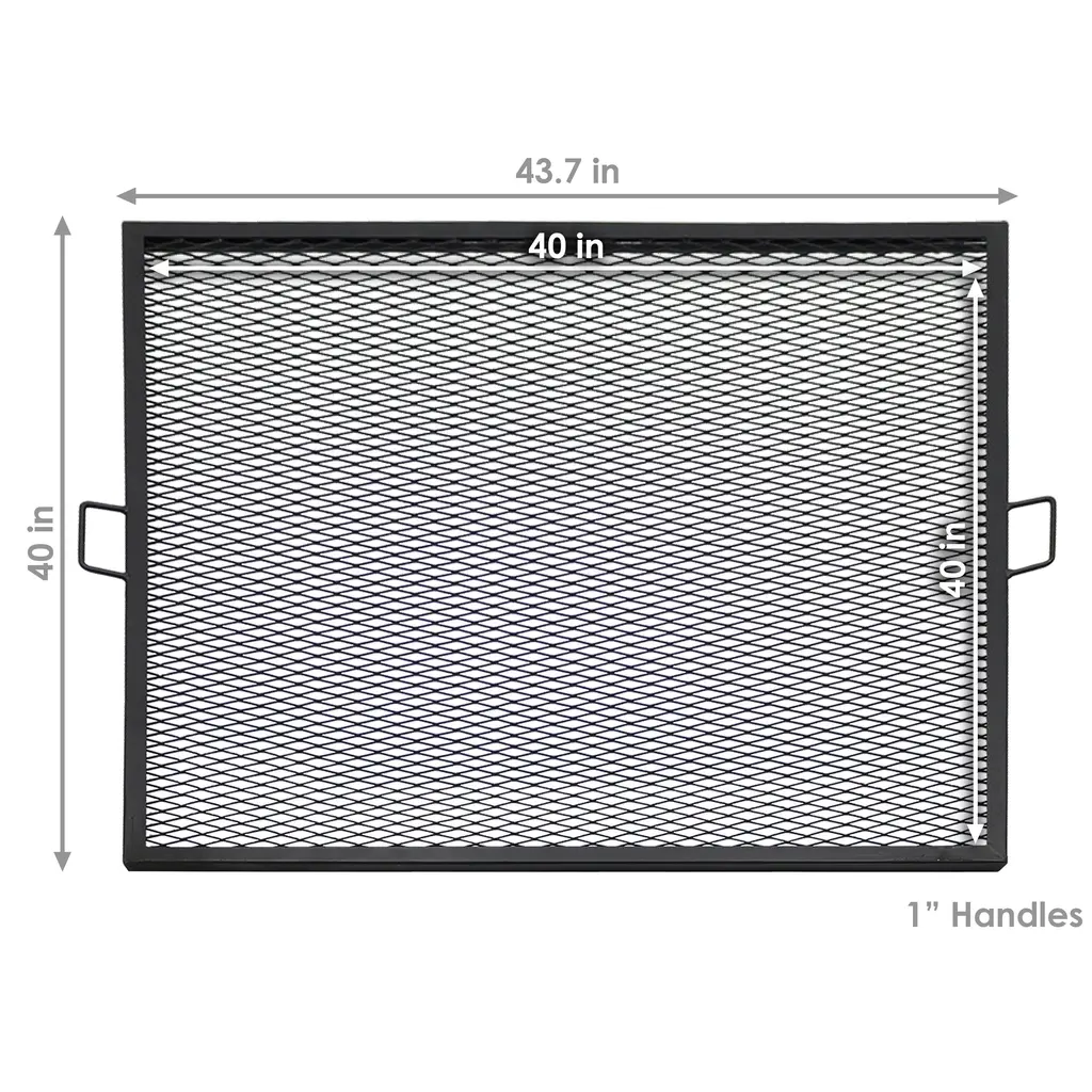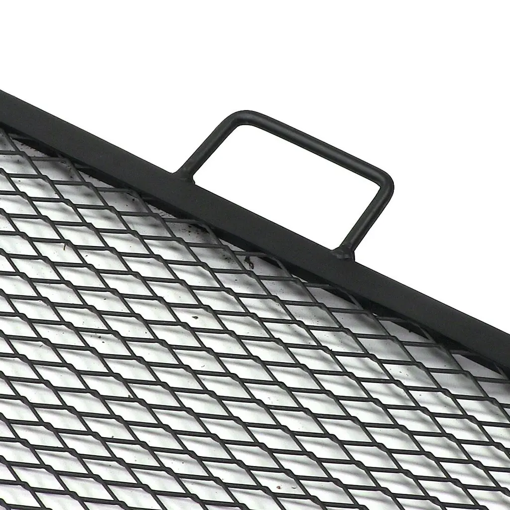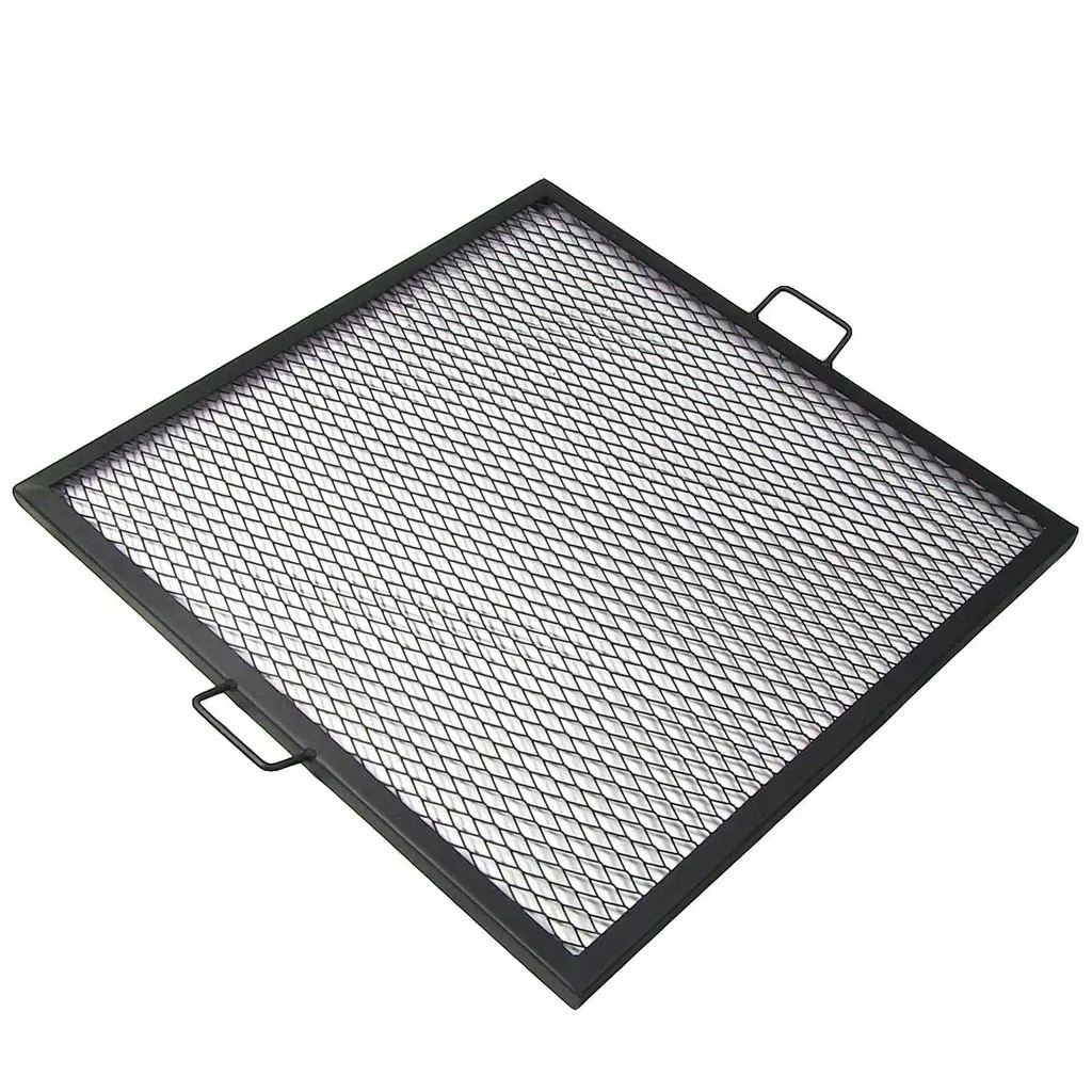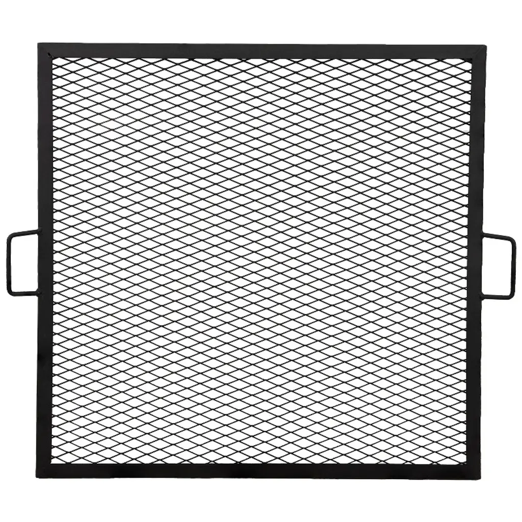 This heavy duty square mesh steel fire pit cooking grate and is perfect for camping and more. You can cook all the campfire food your heart desires with this square fire pit cooking grill. The grill is square shaped making it perfect for square fire pits, and it is made from durable steel material with a steel mesh surface to allow food to cook evenly. Plus, the handles on the sides and the raised edges makes it easy to maneuver and you don't have to worry about your food sliding off into the flames.