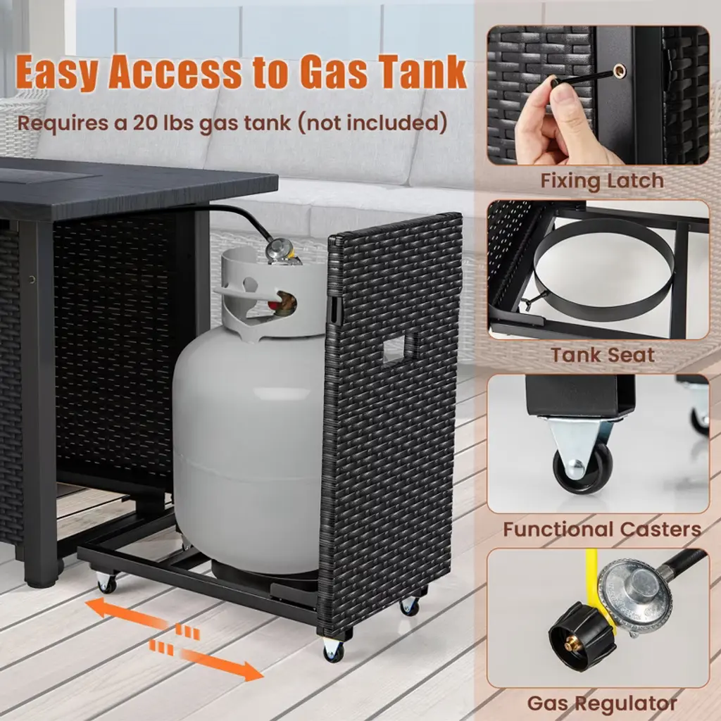 Tangkula 42 Inch Patio Rattan Propane Fire Pit Propane Gas Fire Pit Table W/ Wind Guard Black