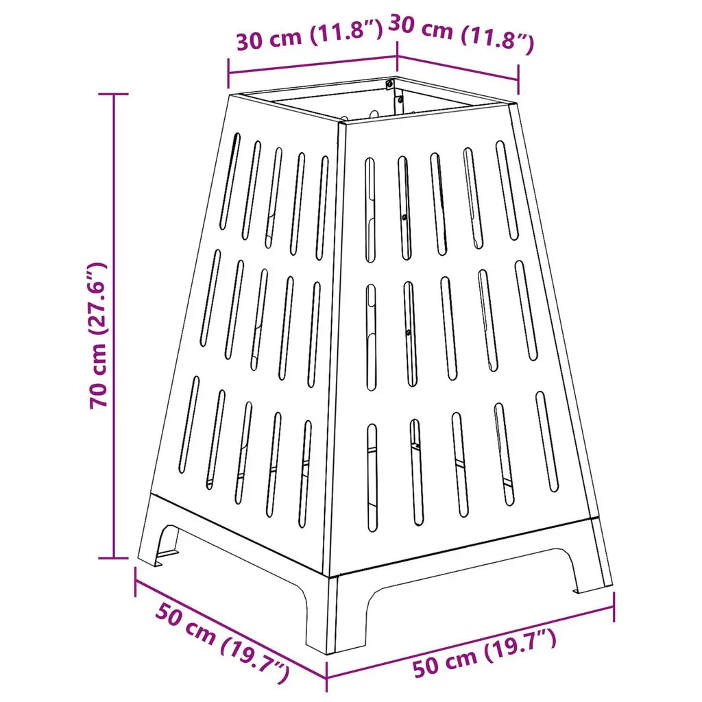 This Industrial Fire Pit is a must-have for anyone who loves outdoor hangouts and cozy nights by the fire. Designed for outside use, its industrial-inspired look fits perfectly in gardens or on patios, bringing elements of urban loft style with a raw, practical finish that goes with any outdoor setup. Its trapezoidal shape is perfect for efficient heating and smoke release, making it a social centerpiece during chilly months, providing warmth and ambiance for groups on porches, patios, or anywhere outdoors. Powder-Coated Steel Finish: The fire pit's steel build is enhanced with a powder-coated surface that adds a strong layer against outdoor elements, protecting it from daily wear while giving it a sleek finish. This keeps it looking great in rustic gardens and urban patios alike.Heat Resistant Construction: Made for high-heat situations, this fire pit can handle strong fires thanks to its heat-resistant design. This feature provides safety and reliable performance for hosting friends and family, giving warmth throughout its life.Portable Design: Built for easy movement, this fire pit is a breeze to transport. You can shift it around with minimal effort, adapting it to various outdoor setups at home or on camping trips.Open Design Ventilation: The open shape ensures good airflow and smoke dissipation, creating a steady, enjoyable flame all night long. This design keeps it practical and effective, reducing smoke buildup in crowded spaces.Care & Maintenance: To keep it in great shape, clean the metal parts gently with a damp cloth and dry them. Steer clear of harsh cleaners to maintain its durability and ensure it works well for get-togethers every season. Good to know:This product is not weathered yet and has a normal metal color when you receive it, but a natural patina will develop over time. You could speed up the aging process by spraying it with soap water and salt water. To keep your clothes stain-free, avoid contact with the developing surface layer.