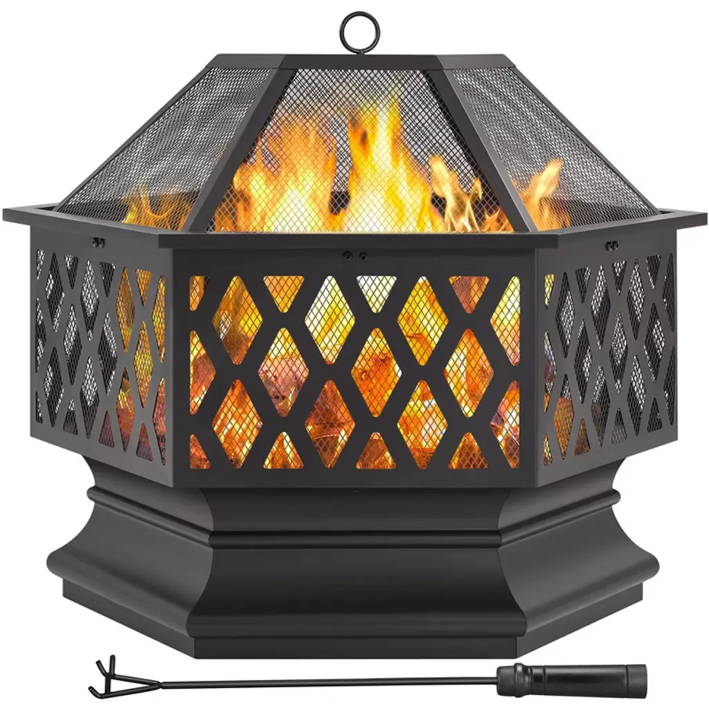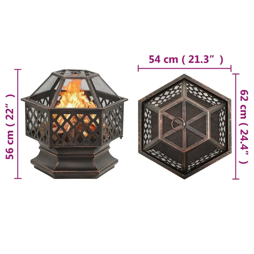 Vidaxl Rustic Fire Pit With Poker 24.4x21.3x22.0" Xxl Steel