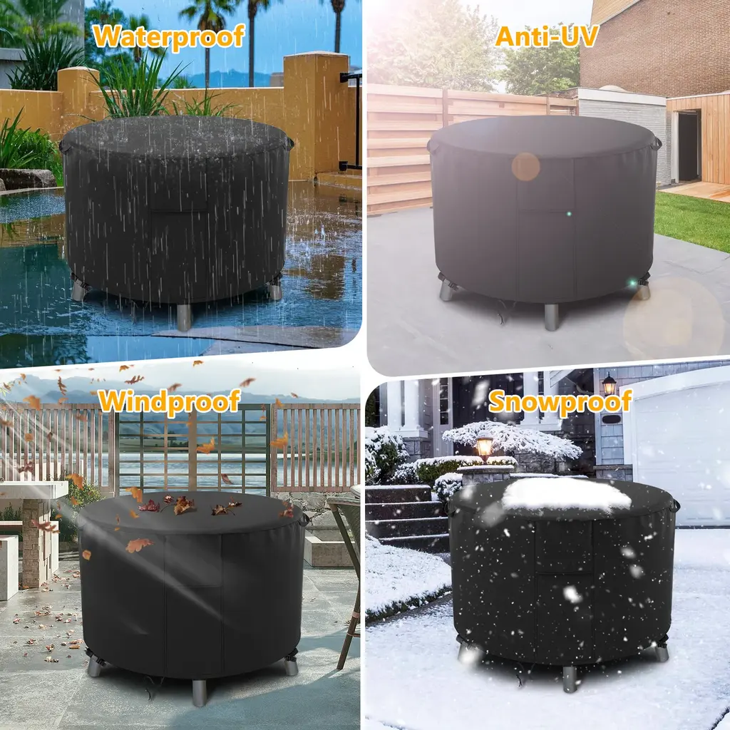 Protect your outdoor fire pit year-round. Crafted from durable 420D Oxford polyester fabric and featuring a waterproof PU coating, this cover ensures your fire pit stays shielded from rain, sunlight, dust, and snow. Its dustproof and UV-resistant properties keep your fire pit clean and well-preserved, no matter the weather. The adjustable Velcro straps and elastic hem rope provide a secure fit, even during windy conditions. Invest in this Super Heavy-duty Fire Pit Cover for worry-free enjoyment and to maintain your fire pit in top-notch condition.Features:Unmatched Wind ResistanceOur outdoor fire pitcover boasts an adjustable drawstring, ensuring an impeccable fit even in strong winds. Rest assured, your cover will stay put!Enhanced Air CirculationThoughtful design includes well-structured air vents that promote optimal airflow. These vents effectively reduce condensation, preventing moisture buildup and rust.Secure Drawstring SystemTighten the drawstring to snugly fit the cover around your fire pit, providing unbeatable wind protection. This feature is especially handy during inclement weather.Versatile Outdoor ProtectionAvailable in various sizes our cover fits not only most round fire pits but also propane fire pits, outdoor wood-burning fireplaces, and outdoor furniture of similar dimensions. (Please measure before purchase!)Hassle-Free MaintenanceCleaning is a breeze - simply rinse with water or wipe with a damp cloth and air dry. Our included compact bag makes storage space-efficient and hassle-free.