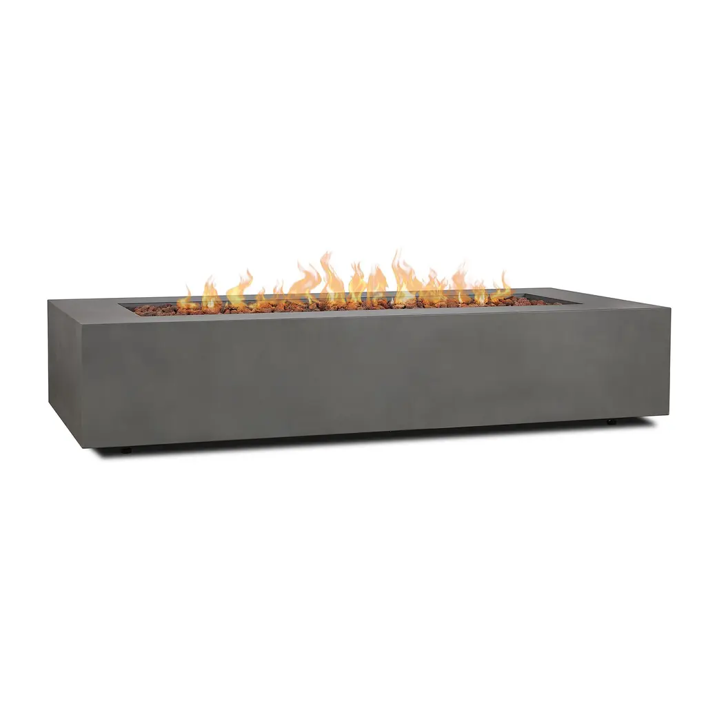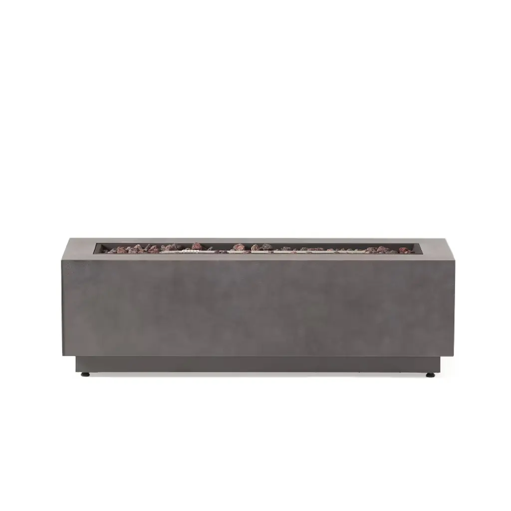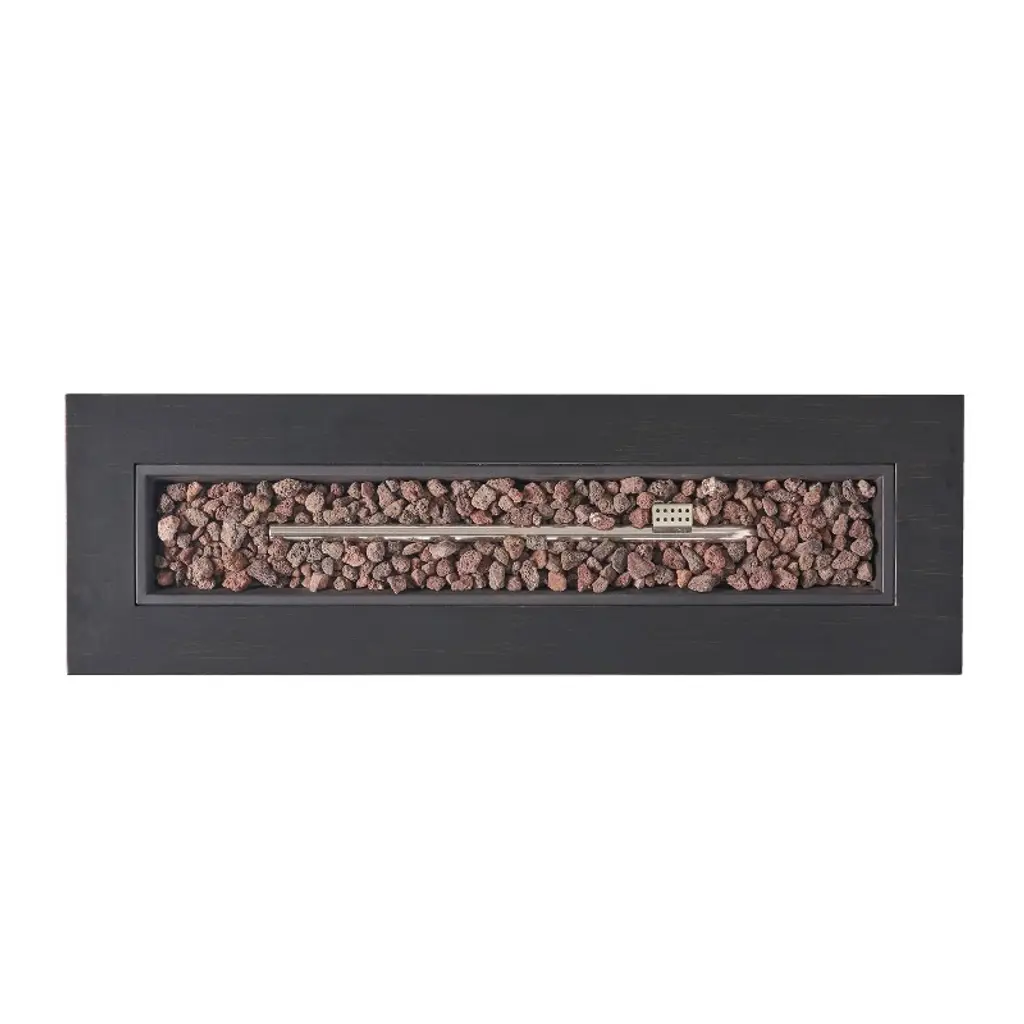 Gather your friends and family and enjoy the delightful warmth around a fire. With a rectangular structure of powder-coated iron, this 50,000 BTU propane gas fire pit not only offers an incredible upgrade in style but is also perfect for parties due to its easy seating arrangement. From intimate conversations around a cozy fire to stargazing on cool summer nights, our fire pit will have no trouble gathering everyone together for hours of quality time. Please note that tank holder is NOT included.MODERN DESIGN: With clean, precise lines, our fire pit is the ideal modern accessory for your interior space. Finished with a chic metal frame, this piece not only offers a chic, minimalistic look but also provides incredible structure.IRON FIRE PIT WITH FINISH: Constructed of powder-coated iron, the frame of this fire pit is made to be incredibly durable, ensuring that this piece will hold up under use. The frame is finished with a complementing color, making this an understated yet chic addition to your home.50,000 BTU: Featuring a rectangular shape and a BTU of 50,000, our fire pit allows easy seating arrangement for you and your guests, providing light and warmth all around during those chilly evenings. Please note that this fire pit is propane gas only.DIMENSIONS: Choose an accessory that is the perfect size for you and your furniture. This fire pit is 48.00" W x 15.00" D x 15.00" H. You will love how much your space can transform with the simple addition of this charming fire pit.NO ASSEMBLY REQUIRED: No assembly is required for this fire pit. Simply place the lava rocks in the pit without covering the burner, and then plug in your standard-size propane tank and enjoy your fire pit. Please note that tank holder is NOT included.