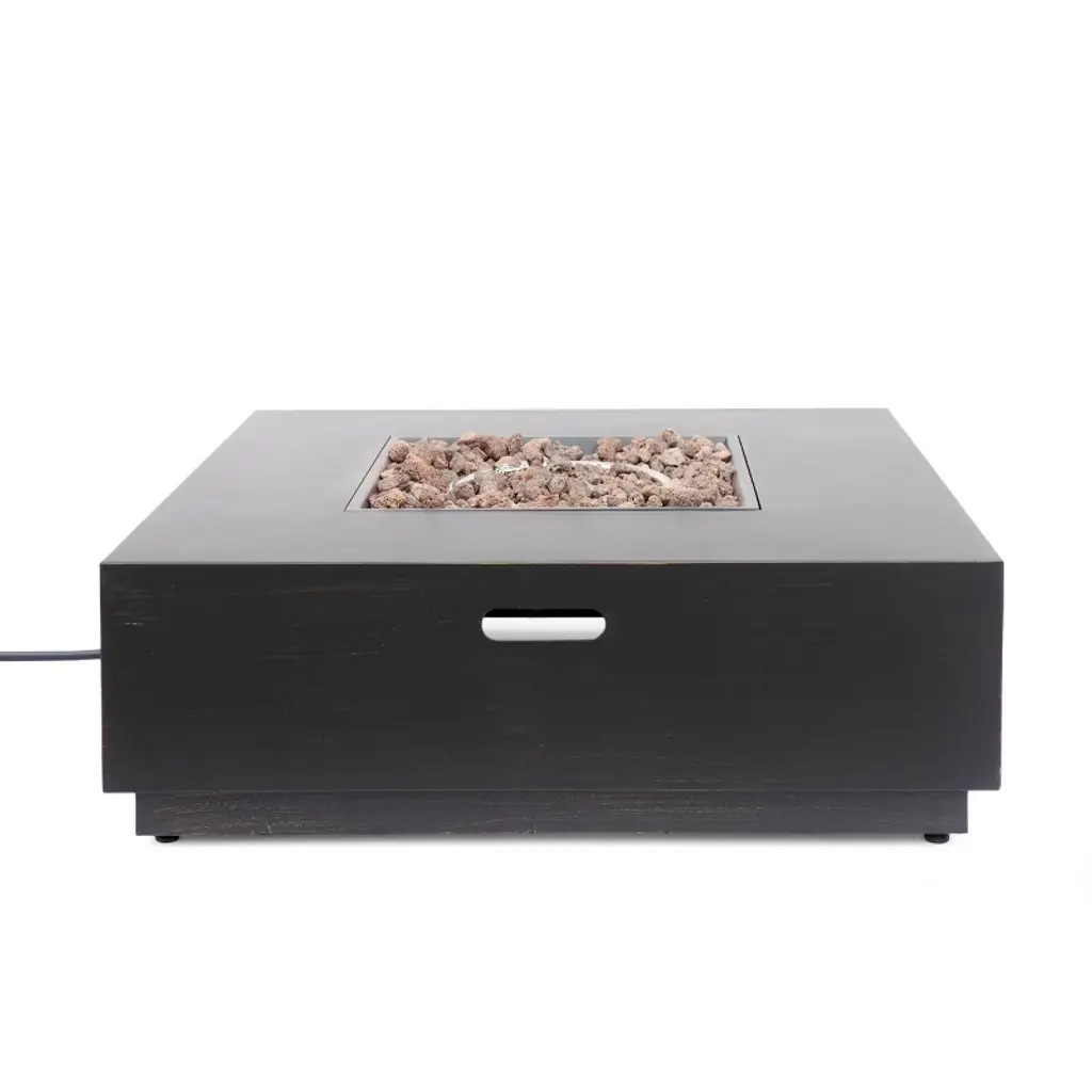 There’s nothing quite like enjoying the twinkling stars on summer nights beside a warm fire. With a square structure of powder-coated iron, this 50,000 BTU propane gas fire pit not only offers an upgrade in style but is also perfect for parties due to its easy seating arrangement. From intimate conversations around a cozy fire to stargazing on summer nights, our fire pit will have no trouble gathering everyone together for hours of quality time. Please note that tank holder is NOT included.MODERN DESIGN: With clean, precise lines, our fire pit is the ideal modern accessory for your interior space. Finished with a chic metal frame, this piece not only offers a chic, minimalistic look but also provides incredible structure.IRON FIRE PIT WITH FINISH: Constructed of powder-coated iron, the frame of this fire pit is made to be incredibly durable, ensuring that this piece will hold up under use. The frame is finished with a complementing color, making this an understated yet chic addition to your home.50,000 BTU: Featuring a square shape and a BTU of 50,000, our fire pit allows easy seating arrangement for you and your guests, providing light and warmth all around during those chilly evenings. Please note that this fire pit is propane gas only.DIMENSIONS: Choose an accessory that is the perfect size for you and your furniture. This fire pit is 39.00" W x 39.00" D x 13.25" H. You will love how much your space can transform with the simple addition of this charming fire pit.NO ASSEMBLY REQUIRED: No assembly is required for this fire pit. Simply place the lava rocks in the pit without covering the burner, and then plug in your standard-size propane tank and enjoy your fire pit. Please note that tank holder is NOT included.