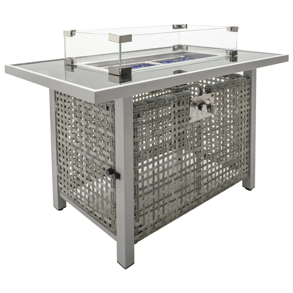 Yoocozz 43" Open Weave Wicker Fire Pit 60000 Btu With Glass Wind Guard- Gray