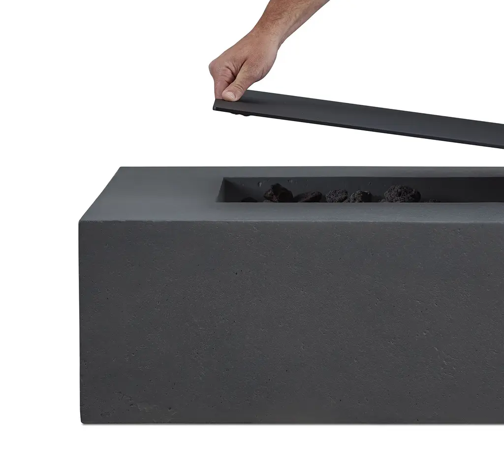 Protect your Abbott fire table from the elements with this rectangular metal lid. When not in use, it transforms the fire table into a ready-for-anything outdoor coffee table.