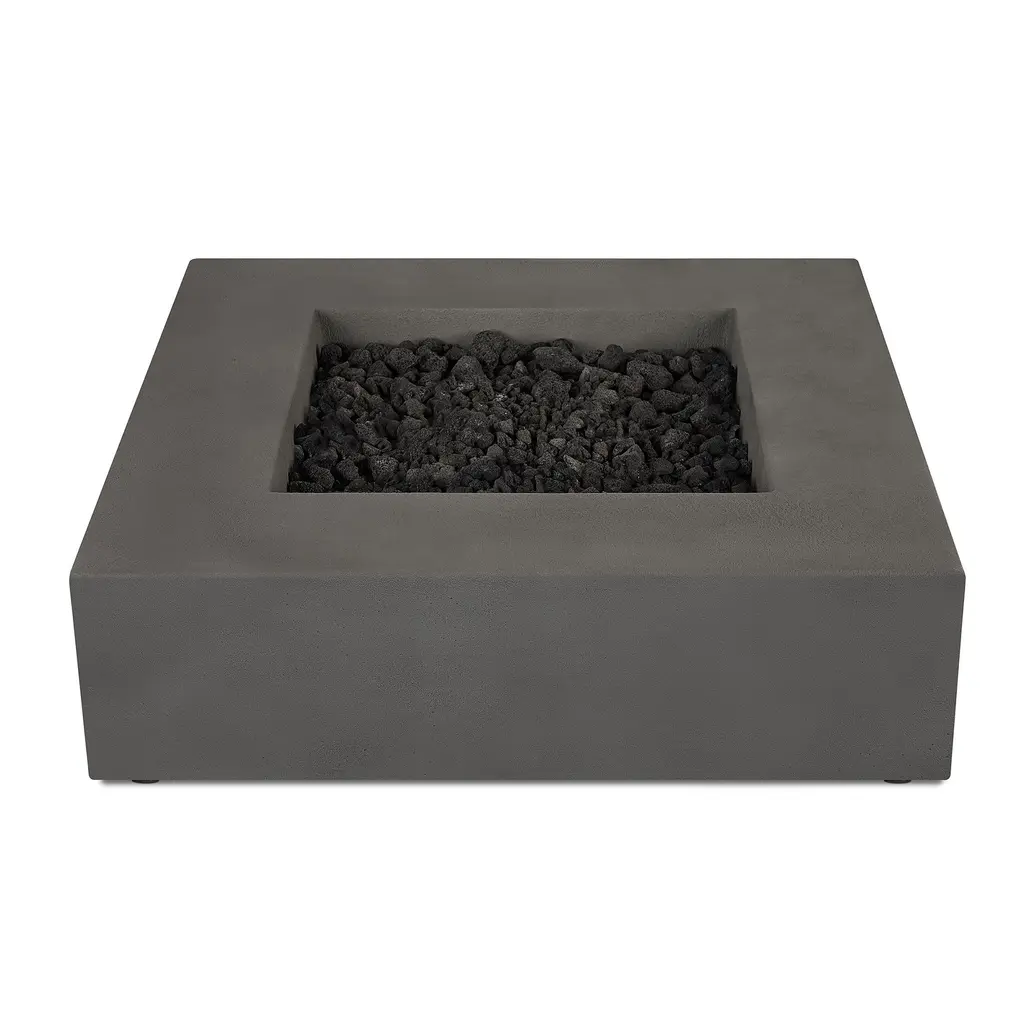 It's a stylish centerpiece for outdoor lounging. Square silhouette gives it a contemporary look. Yields a clean flame with the push of a button. Choose between propane or natural gas powered.