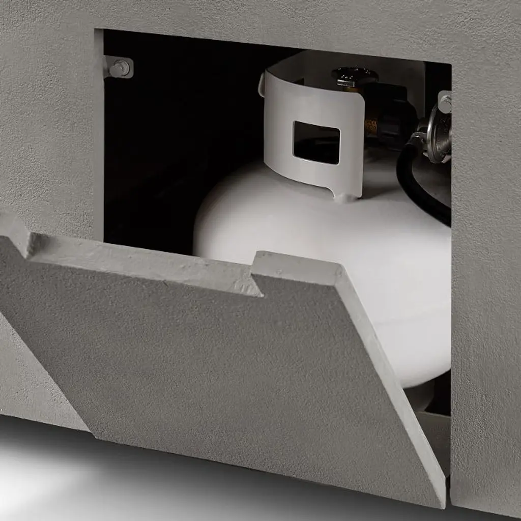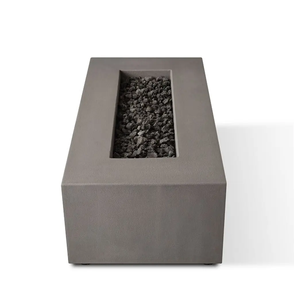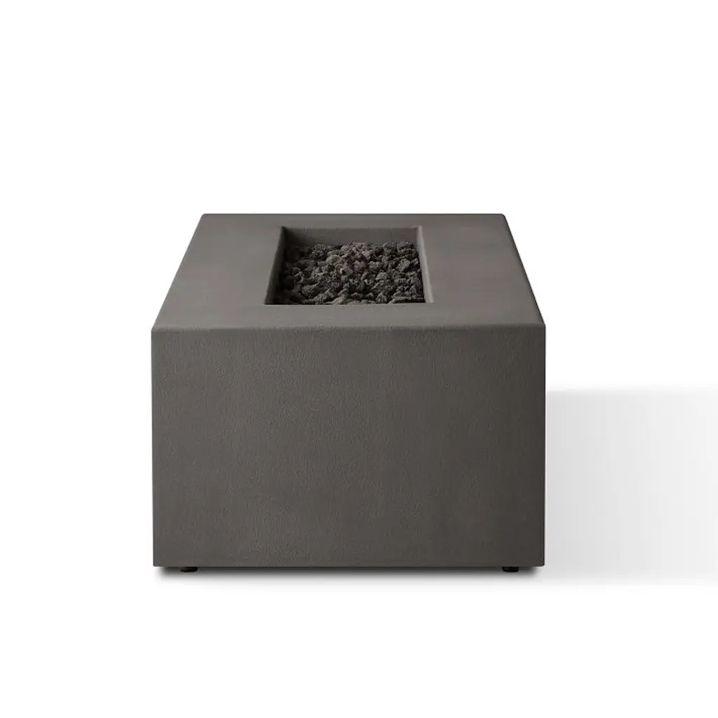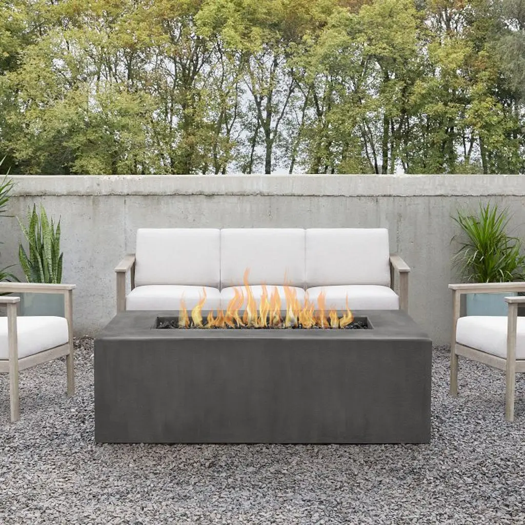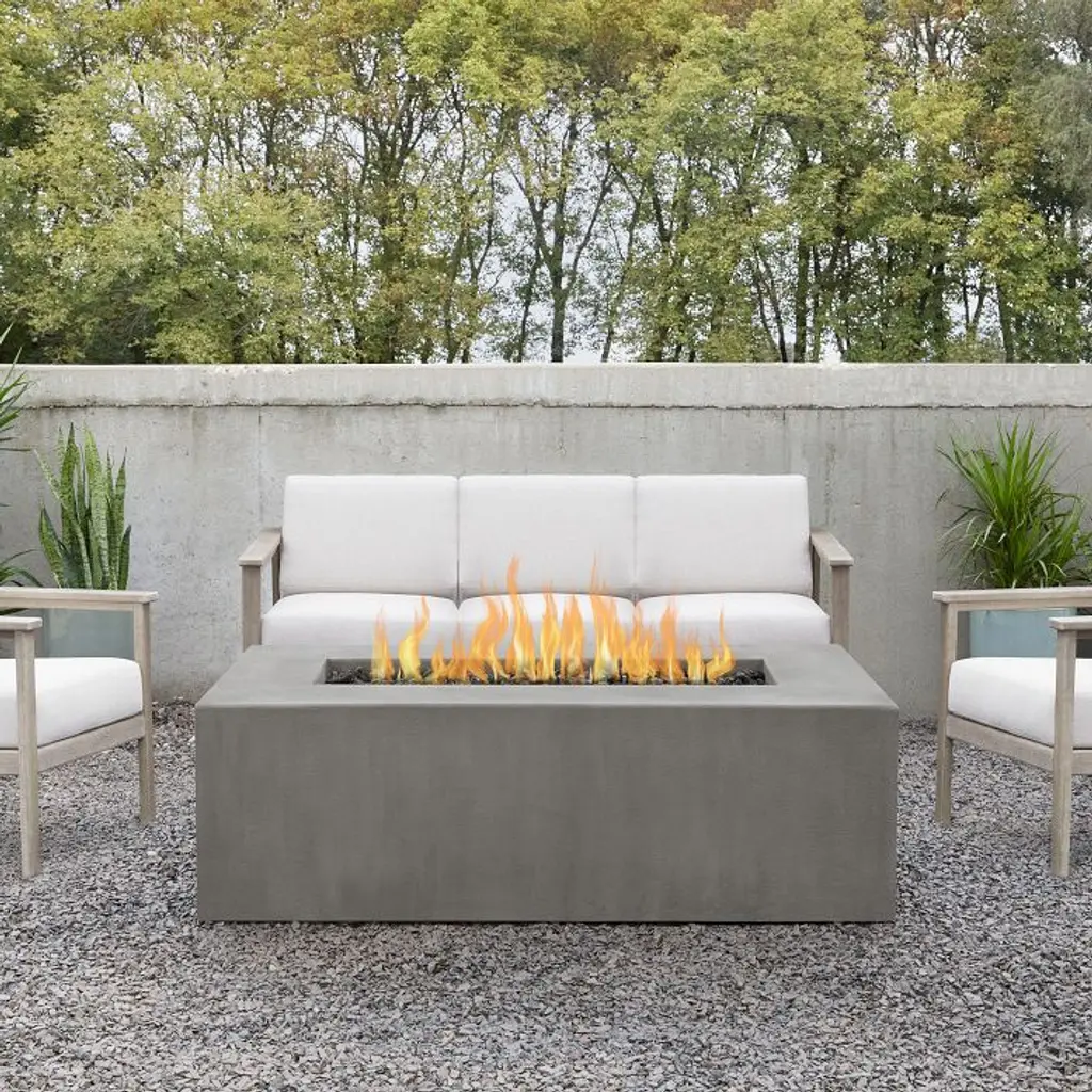 It's a stylish centerpiece for outdoor lounging. Square silhouette gives it a contemporary look. Yields a clean flame with the push of a button. Choose between propane or natural gas powered.