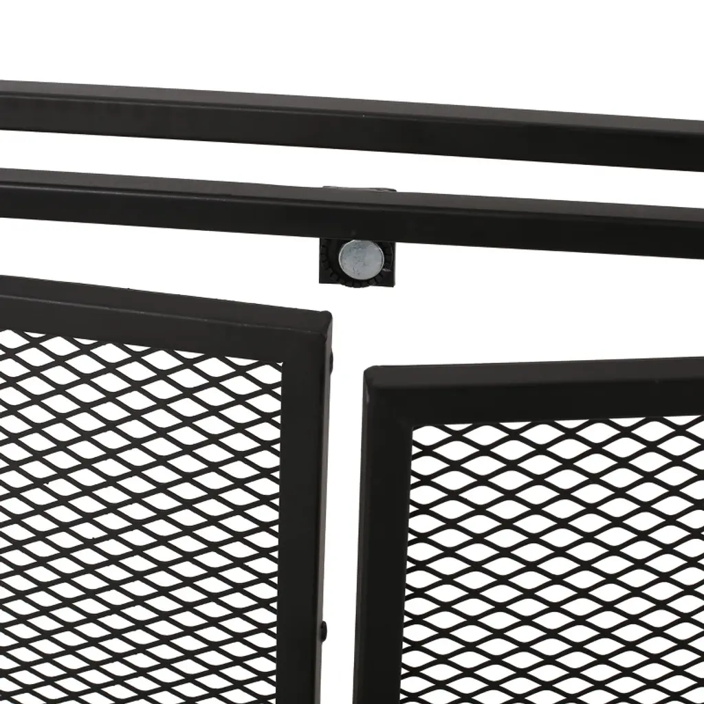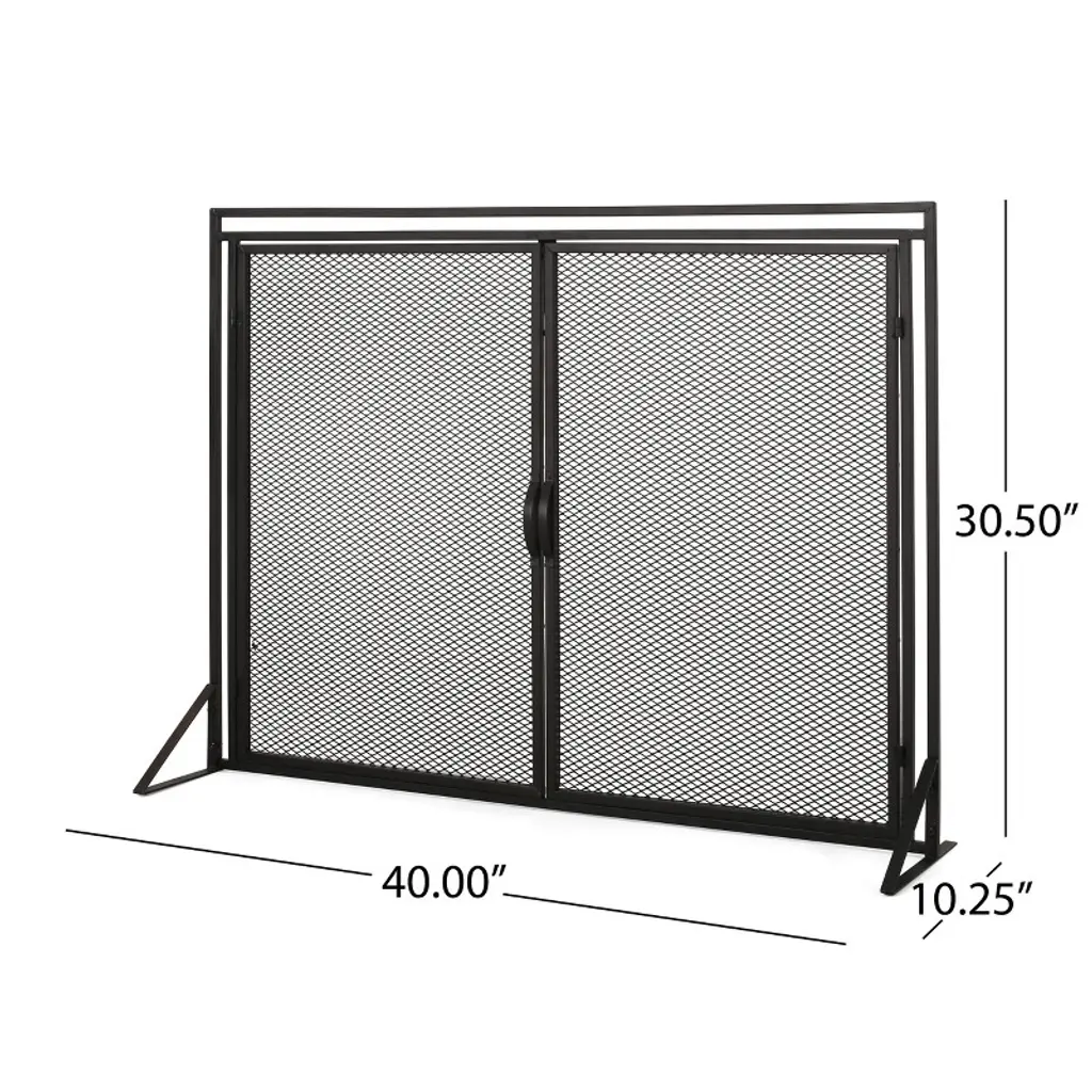 Angel Sar Modern Fireplace Screen With Access Doors, 40''w Iron Fire Screen With Matte Finish For Indoor Fireplace Safety, Black