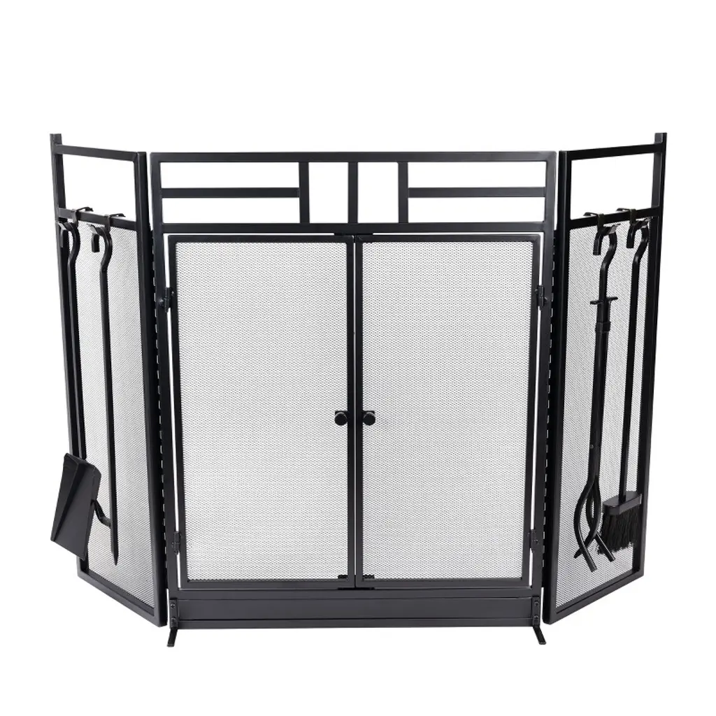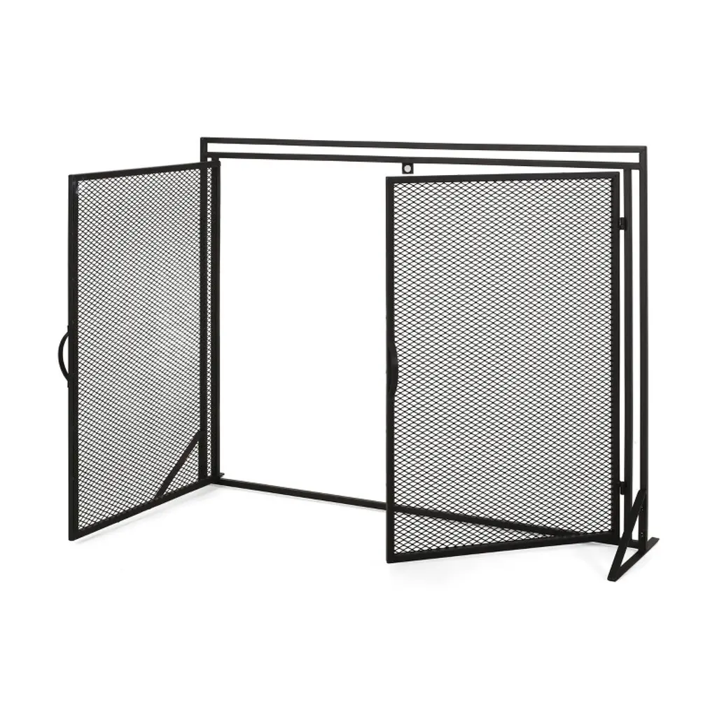 This 40" iron fireplace screen features a matte black finish and two magnetic-access doors for fire maintenance. The single-panel design blocks embers while complementing modern decor. Durable iron frame withstands high heat.