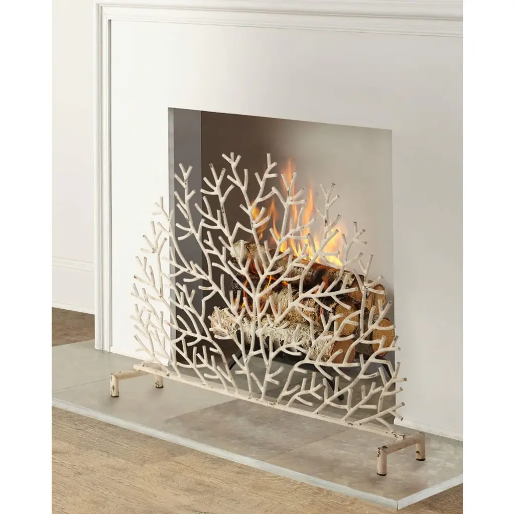 Antiqued White Coral Branches Single-Panel Fireplace Screen