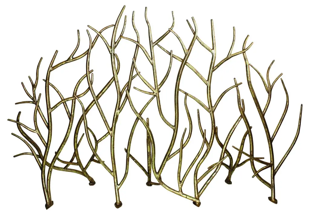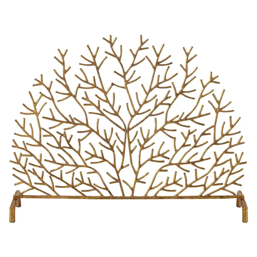 This unique fireplace screen ensures your hearth remains the focal point of the room even during warmer seasons. This delightful birds fireplace screen brings the outdoors into your home with a rustic design featuring a row of leafy branches with little gold-tone birds perched on them. Constructed of wrought iron in a powder-coated bronze finish and accented with gold detailing.