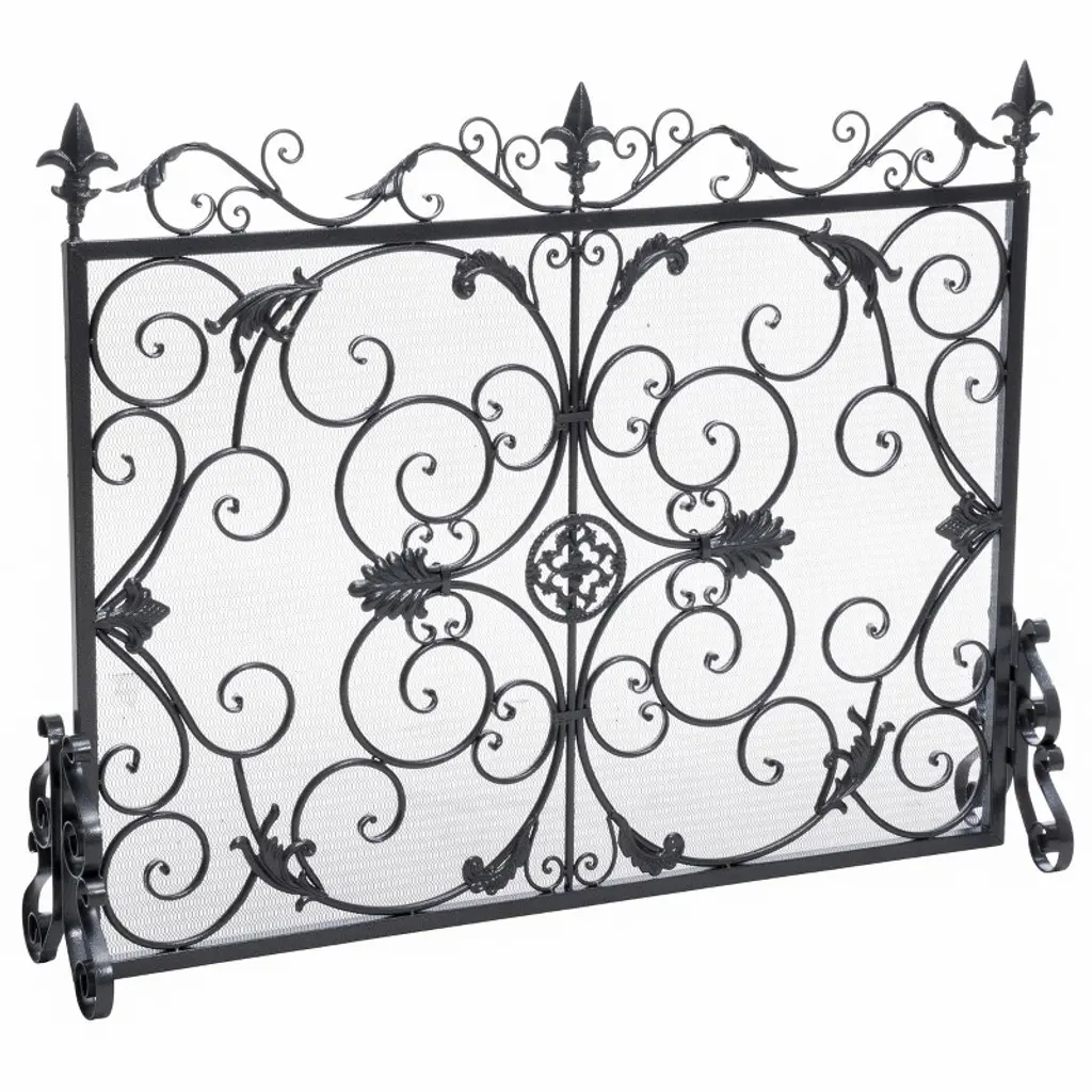 Burnished Gold Monogrammed Or Fleur De Lis Accent Fireplace Screen