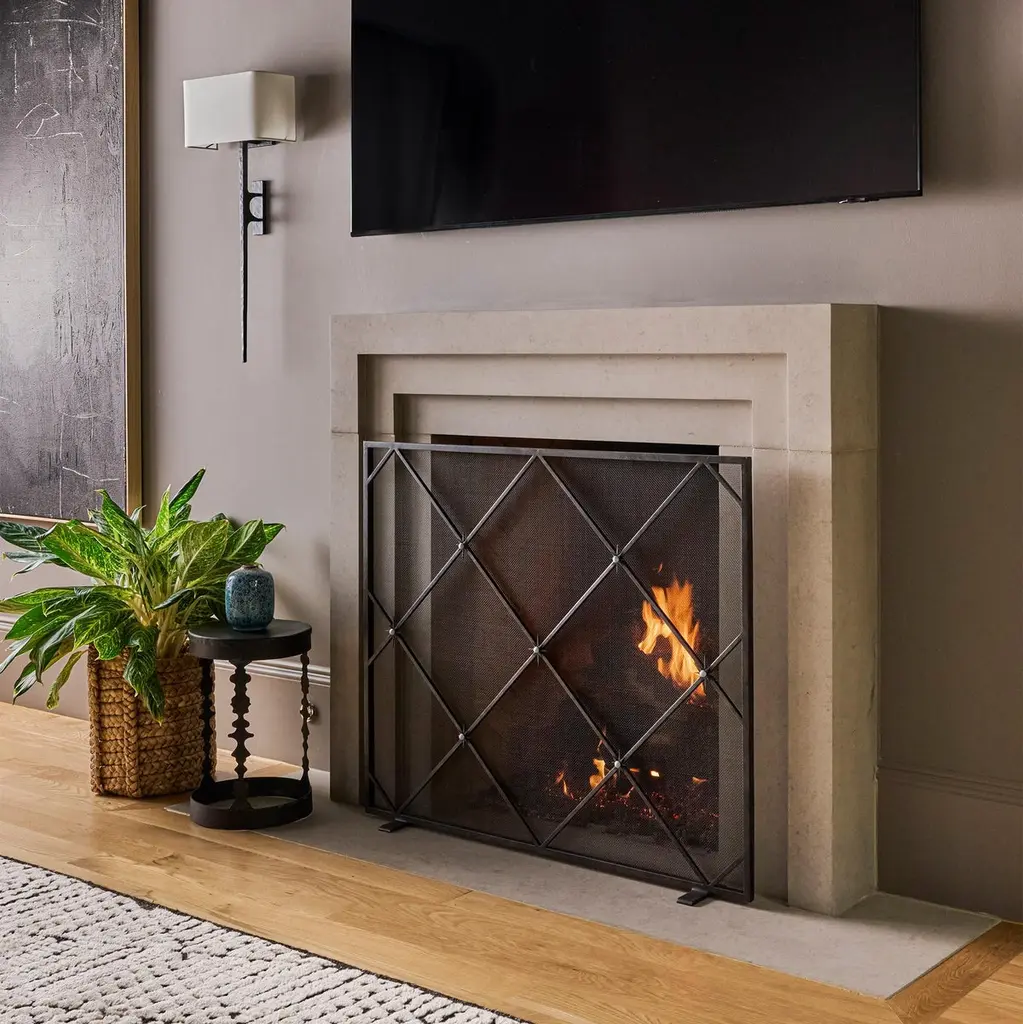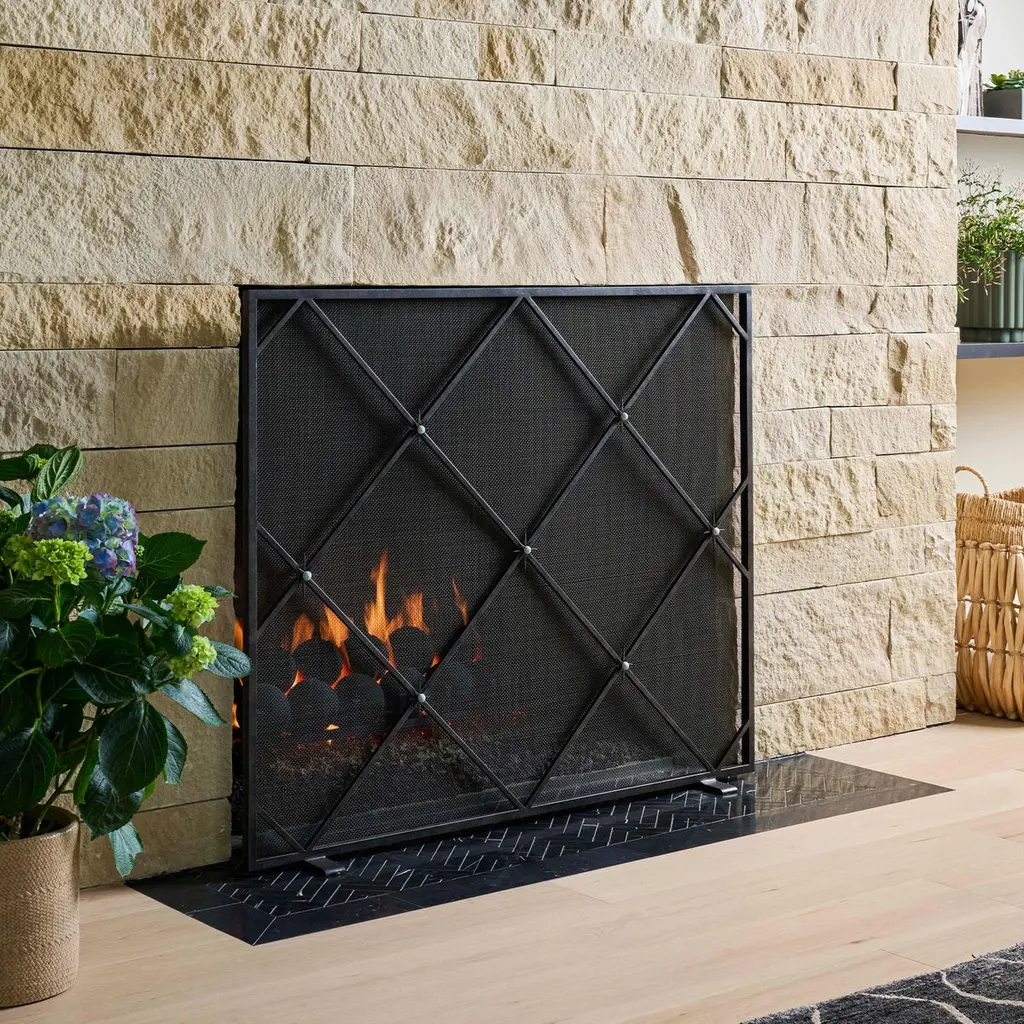 The Celeste Fireplace Screen's hand-forged star points and colorful, textural ceramic spheres evoke the beauty of a clear night sky. The solid iron frame, crossbar motif, and cheerful decorative elements are skillfully built by American artisans. Inspired by the romantic beauty of starry nights, Celeste Fireplace Screen adds spirited charm to your hearth. Featuring hand-forged star points and colorful, textural ceramic spheres, this exquisite design is skillfully constructed using solid iron for a sturdy experience that will last for generations.Every fireplace screen we offer is unique, with slight variations, due to the artisan nature of our hand-forged and hand-applied finishing process. Handmade of solid iron in the U.S.A, it is available in seven hand-painted finishes and ships in 6-8 weeks.