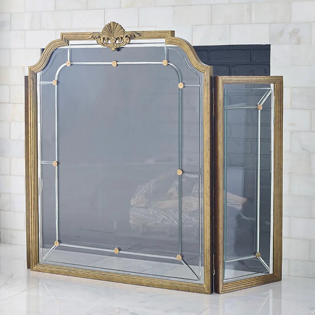 Acanthus leaf and shell motifs, rosettes and beveled glass create a timeless antique aesthetic. This functional accent blocks sparks and embers while the beveling enhances the play of light. Powder-coated cast-aluminum frame Antique gold finish replicates gold leafing Beveled glass Hinge tri-panel design for a customized look and fit The screen withstands heat up to 120–140°F, and can be used with compressed logs, gas logs or small wood fires with 1-1/2' spacing Some assembly Avoid the use of harsh or abrasive chemicals, as they may damage the finish Coordinates with our Chelsea Wall Mirror A Frontgate exclusive. At Frontgate, our primary focus is quality. We guarantee that every product we sell will stand up to the supreme test – our customers' satisfaction. To learn more about our policies, visit our Shipping & Processing, Returns & Exchanges and Warranty & Price Guarantee pages. Acanthus leaf and shell motifs, rosettes and beveled glass create a timeless antique aesthetic. This functional accent blocks sparks and embers while the beveling enhances the play of light. Powder-coated cast-aluminum frame Antique gold finish replicates gold leafing Beveled glass Hinge tri-panel design for a customized look and fit The screen withstands heat up to 120–140°F, and can be used with compressed logs, gas logs or small wood fires with 1-1/2' spacing Some assembly Avoid the use of harsh or abrasive chemicals, as they may damage the finish Coordinates with our Chelsea Wall Mirror A Frontgate exclusive. At Frontgate, our primary focus is quality. We guarantee that every product we sell will stand up to the supreme test – our customers' satisfaction. To learn more about our policies, visit our Shipping & Processing, Returns & Exchanges and Warranty & Price Guarantee pages.