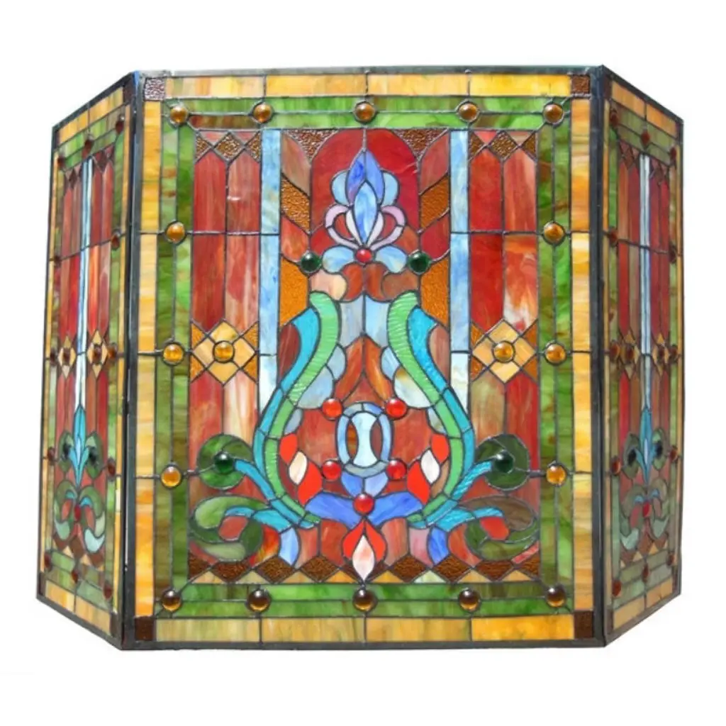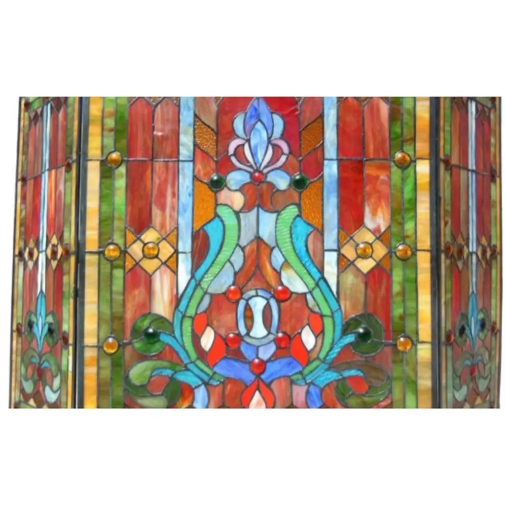 Chloe Lighting Tiffany-glass 3Pcs Folding Victorian Fireplace Screen 44" Wide