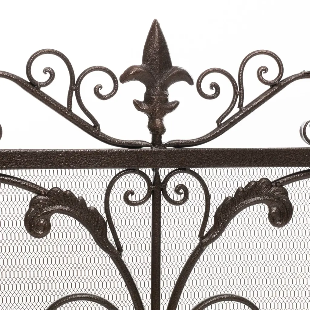 Add elegance and protection to your fireplace with this beautifully crafted iron folding screen. Designed with ornate detailing, it brings classic sophistication to any living room. The hinged panels allow for flexible placement, fitting various fireplace sizes, and fold flat for easy storage when not in use. Constructed from durable iron, this screen is built to last, while multiple color options let you match your décor perfectly. Measuring 44.75" L x 1" W x 35.5" H with a stable 10" base depth, it offers both style and functionality. Easy assembly ensures you can enjoy its beauty and practicality in no time. Material: Iron Multiple Color Options Some Assembly Required Product Dimensions in inches:L 44.75 x W 1 x H 35.5 Base depth: 10 inches Weight: 17.8 lbs
