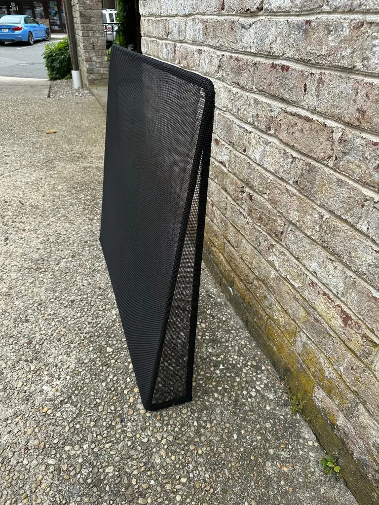 Handcrafted custom modern metal and wire mesh fireplace screen.Custom sizes.