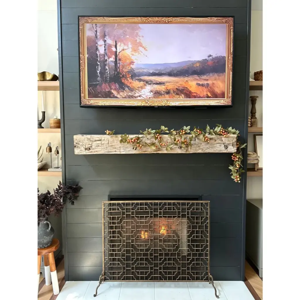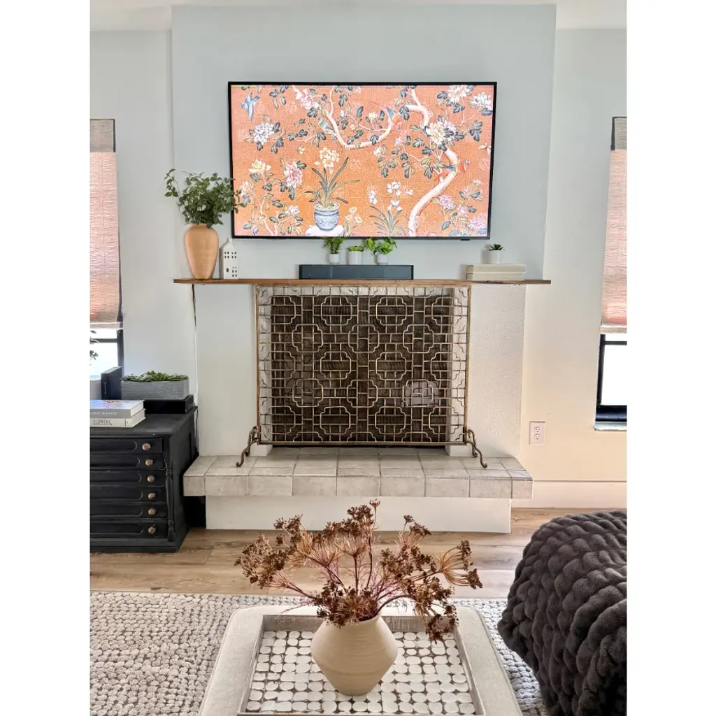 Ralph Lauren could possibly sport this screen with its equestrian design of links in tole and iron. This Italian gold fire screen with mesh can have a classic design with a "ranch like" influence. The perfect classic purchase...."giddy-up"!