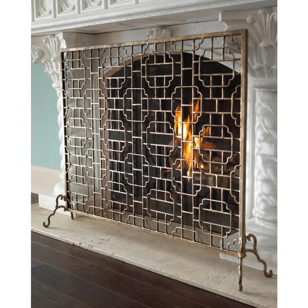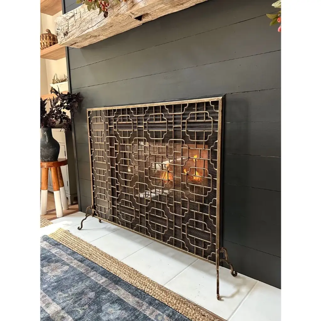 Geometric Light Burnished Gold Single-Panel Fireplace Screen