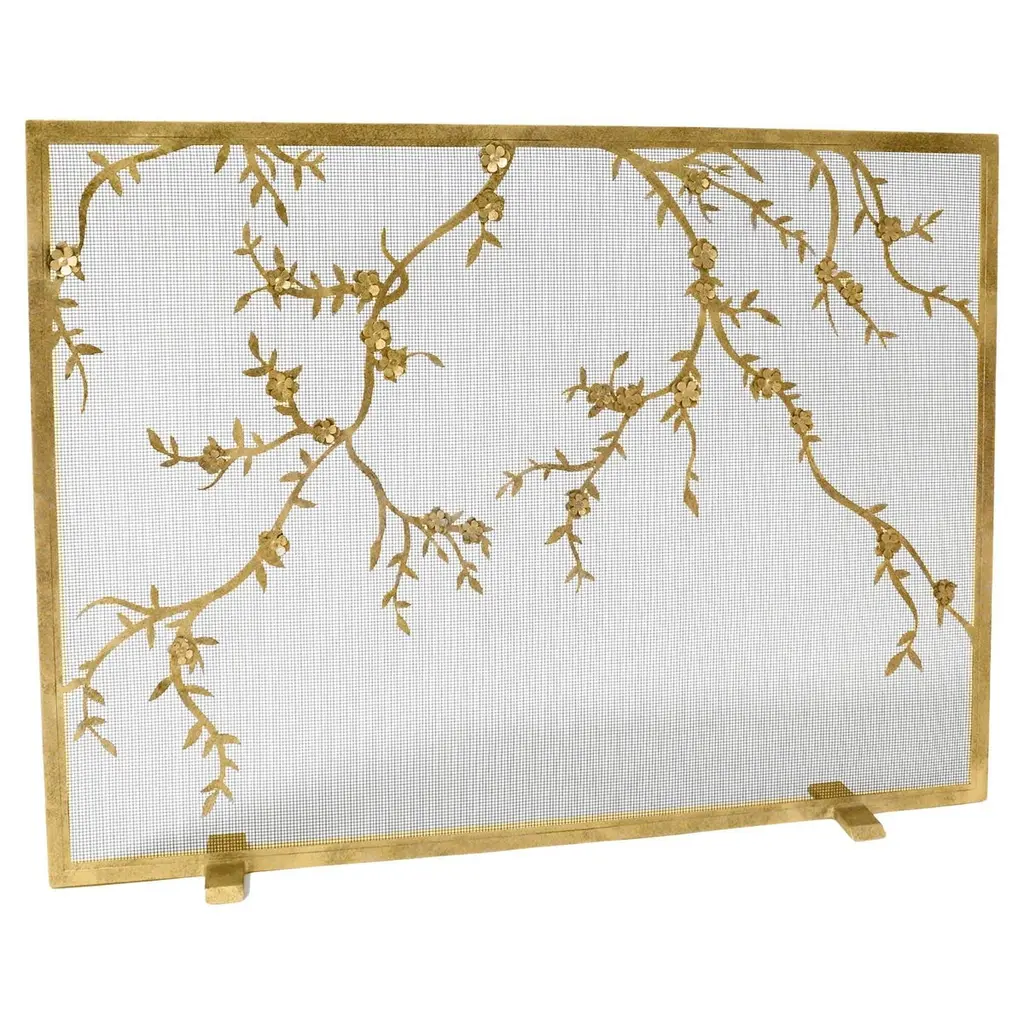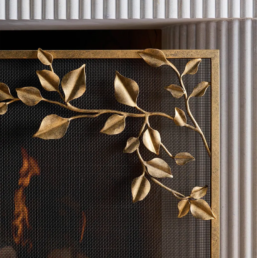 Graceful Leaves Fireplace Screen In Brilliant Gold