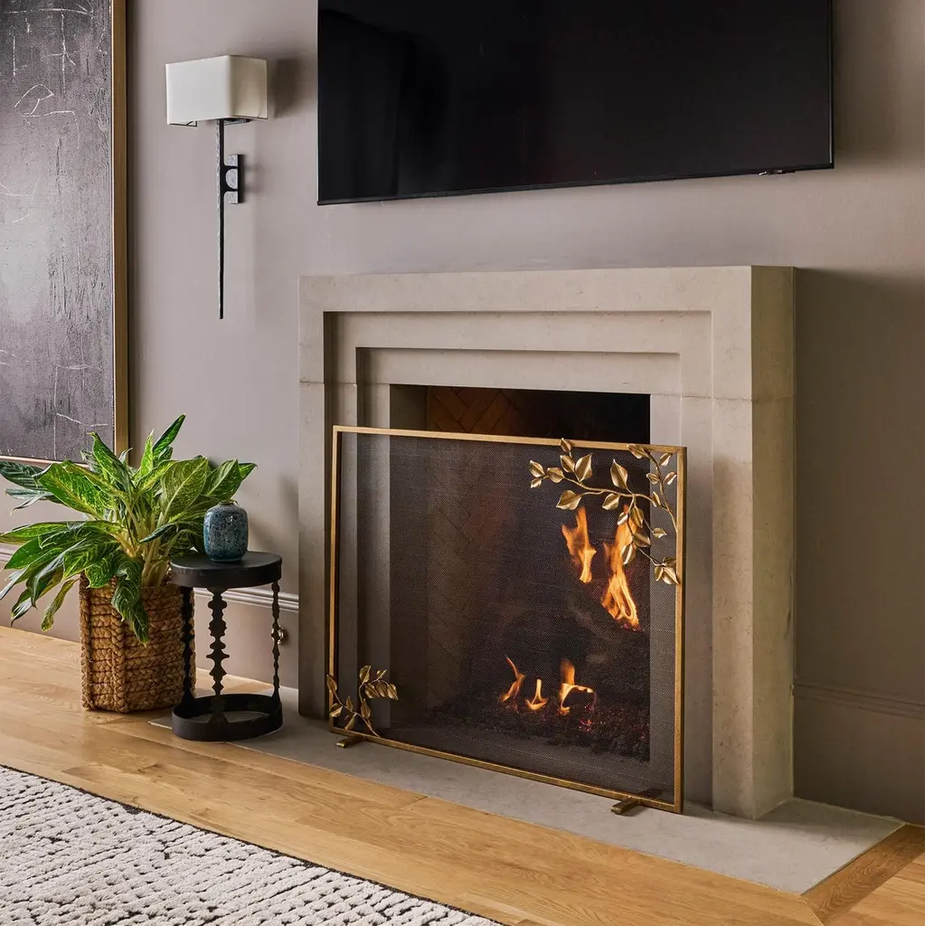Minimal, refined, and beautifully quiet, the Graceful Leaves Fireplace Screen is a poetic nod to nature’s still moments. Two slender branches, adorned with delicately sculpted leaves, rise from opposite corners—like a gentle duet framing the fire within. Crafted with meticulous attention to proportion and line, this piece is a masterclass in restraint, offering a serene presence that doesn’t compete for attention, but elevates the entire room. Its calming silhouette and open design invite the eye to linger, adding a quiet sophistication to both traditional and modern hearths alike.Made in the United States by expert craftsmen, our screens are designed to fit seamlessly in with any setting. Each piece is unique, with slight variations, due to the artisan nature of our hand-applied finishing process. Handmade in the U.S.A., it ships in 6-8 weeks.