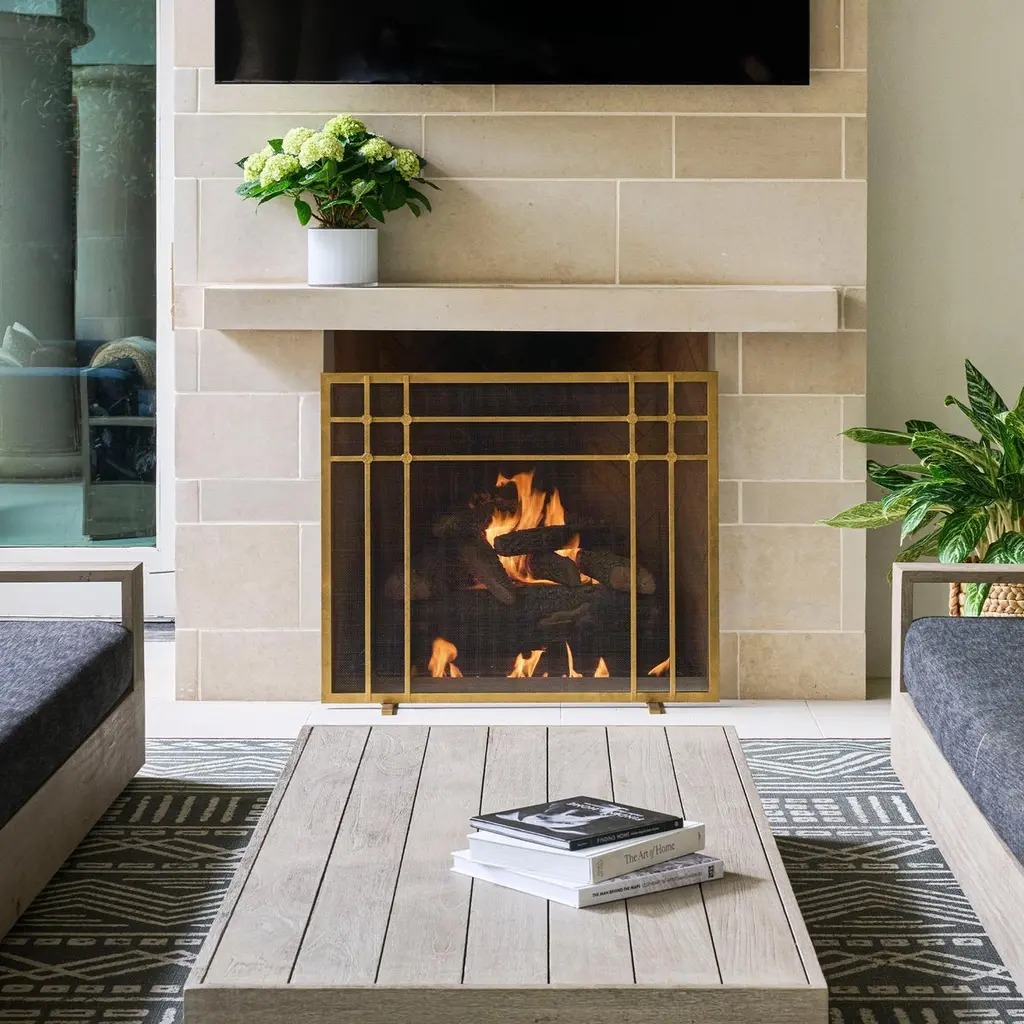 The Henry fireplace screen showcases a classic geometric design that is updated and modernized with gently hammered circle details. Each piece is unique, with slight variations, due to the artisan nature of our handcrafted finishing process. If you're looking for a handcrafted fireplace screen made in the U.S.A., this is the premier item to add to your home. You can choose from several sizes and designs, so no two pieces will be exactly alike. Since it is handmade in the US, it will take 6-8 weeks for your screen to ship from the date ordered. If you've never experienced the beauty of an artisanal fireplace screen, it's worth taking a look at how the Henry fireplace screen can enhance your space.