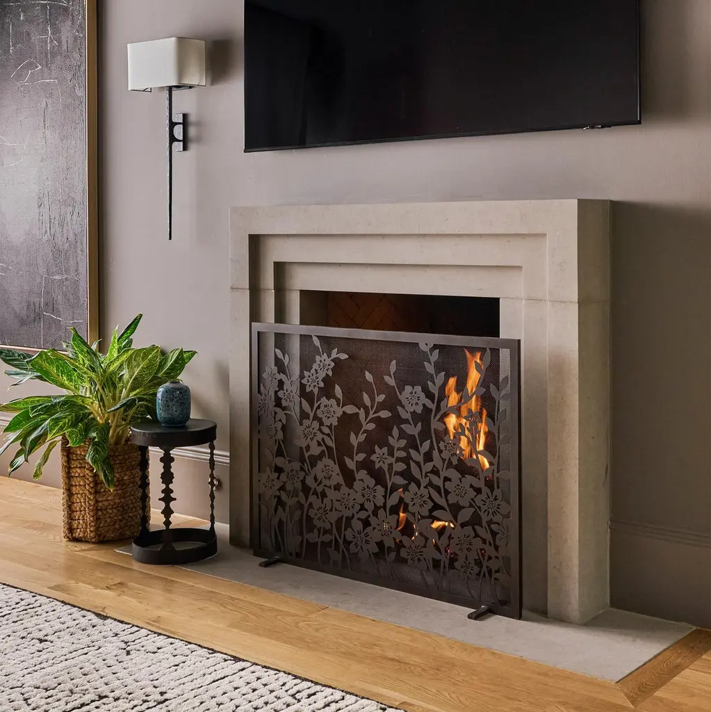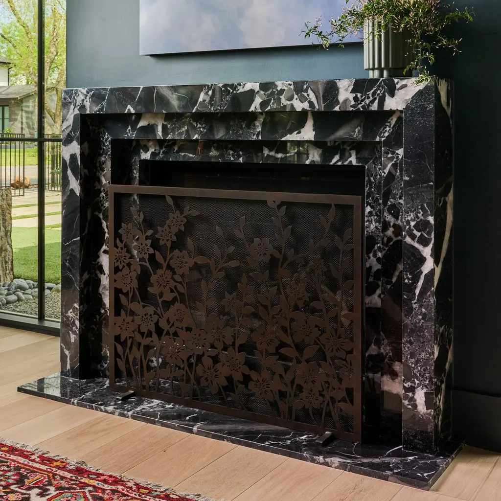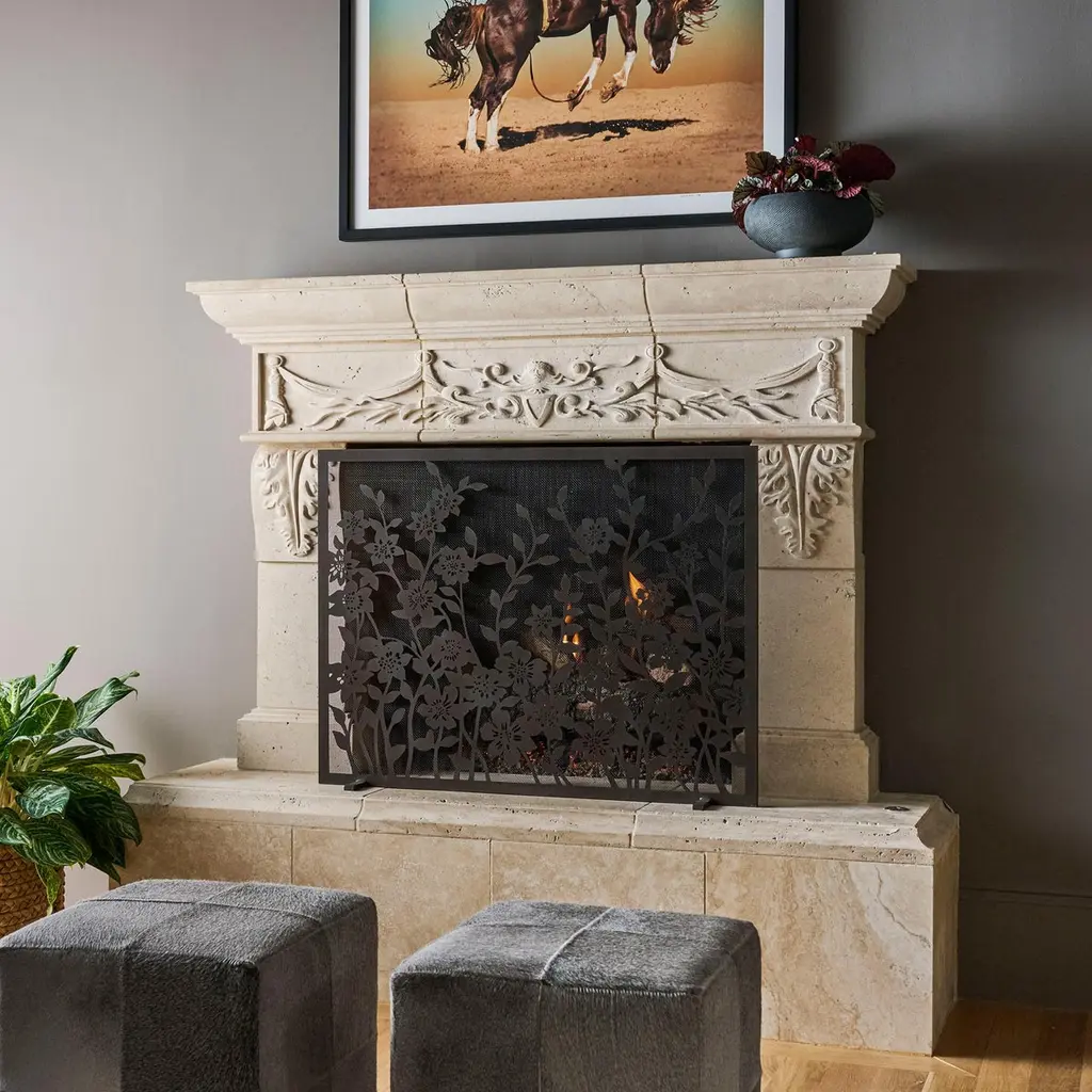 A romantic tangle of hand-cut metal blooms creates a soft yet structured composition, where delicate petals and graceful vines intertwine in quiet harmony. The Lacey Floral Fireplace Screen brings both decorative elegance and functional beauty to your hearth. With intricate layers of botanical detail and vintage-inspired charm, it evokes the feeling of an heirloom garden frozen in time. Whether placed in a cozy cottage living room, a modern farmhouse interior, or a classic traditional space, this decorative fireplace screen adds a sense of quiet abundance and warmth. Crafted for those who love floral home décor, romantic fireplace accessories, and timeless design, it transforms the fireplace into a captivating focal point — even when the fire is not lit.Made in the United States by expert craftsmen, our screens are designed to fit seamlessly in with any setting. Each piece is unique, with slight variations, due to the artisan nature of our hand-applied finishing process. Handmade in the U.S.A., it ships in 6-8 weeks.