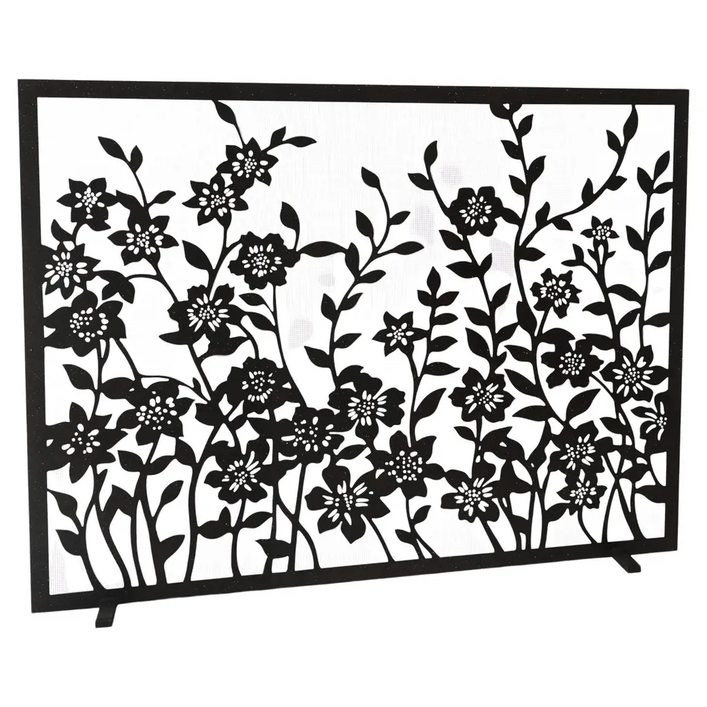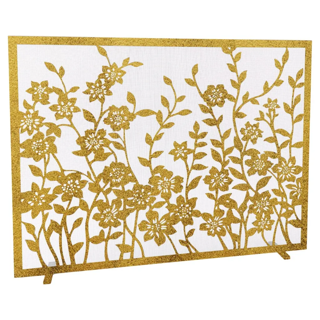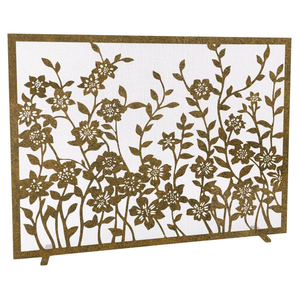 Lacey Floral Fireplace Screen In Gold Rubbed Black