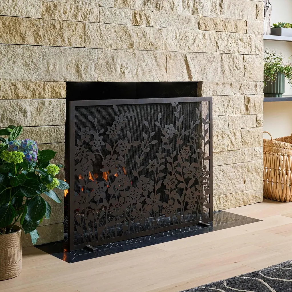 A romantic tangle of hand-cut metal blooms creates a soft yet structured composition, where delicate petals and graceful vines intertwine in quiet harmony. The Lacey Floral Fireplace Screen brings both decorative elegance and functional beauty to your hearth. With intricate layers of botanical detail and vintage-inspired charm, it evokes the feeling of an heirloom garden frozen in time. Whether placed in a cozy cottage living room, a modern farmhouse interior, or a classic traditional space, this decorative fireplace screen adds a sense of quiet abundance and warmth. Crafted for those who love floral home décor, romantic fireplace accessories, and timeless design, it transforms the fireplace into a captivating focal point — even when the fire is not lit.Made in the United States by expert craftsmen, our screens are designed to fit seamlessly in with any setting. Each piece is unique, with slight variations, due to the artisan nature of our hand-applied finishing process. Handmade in the U.S.A., it ships in 6-8 weeks.