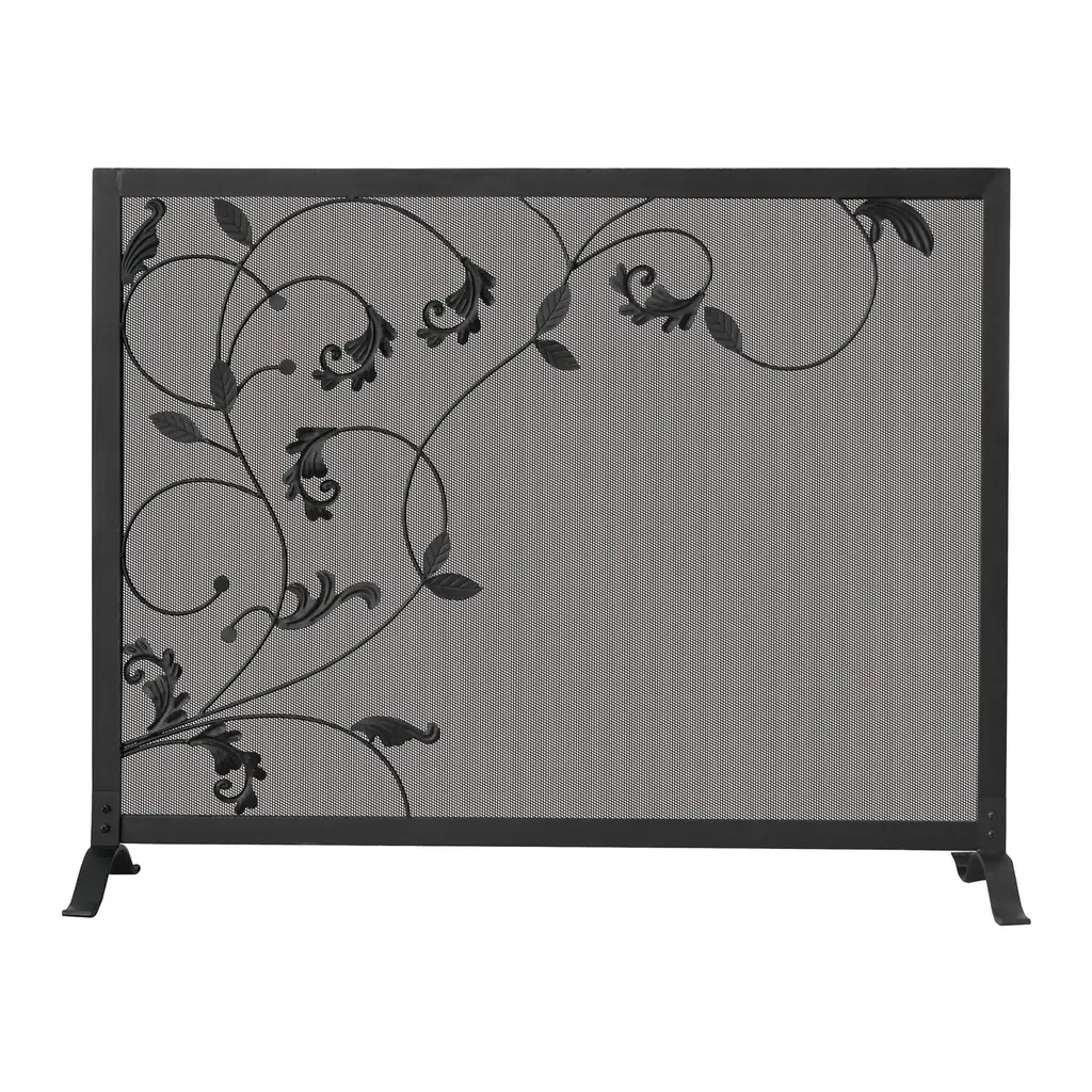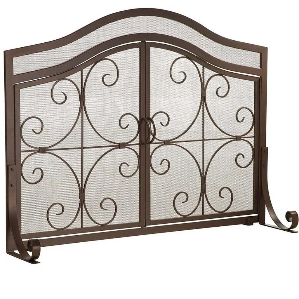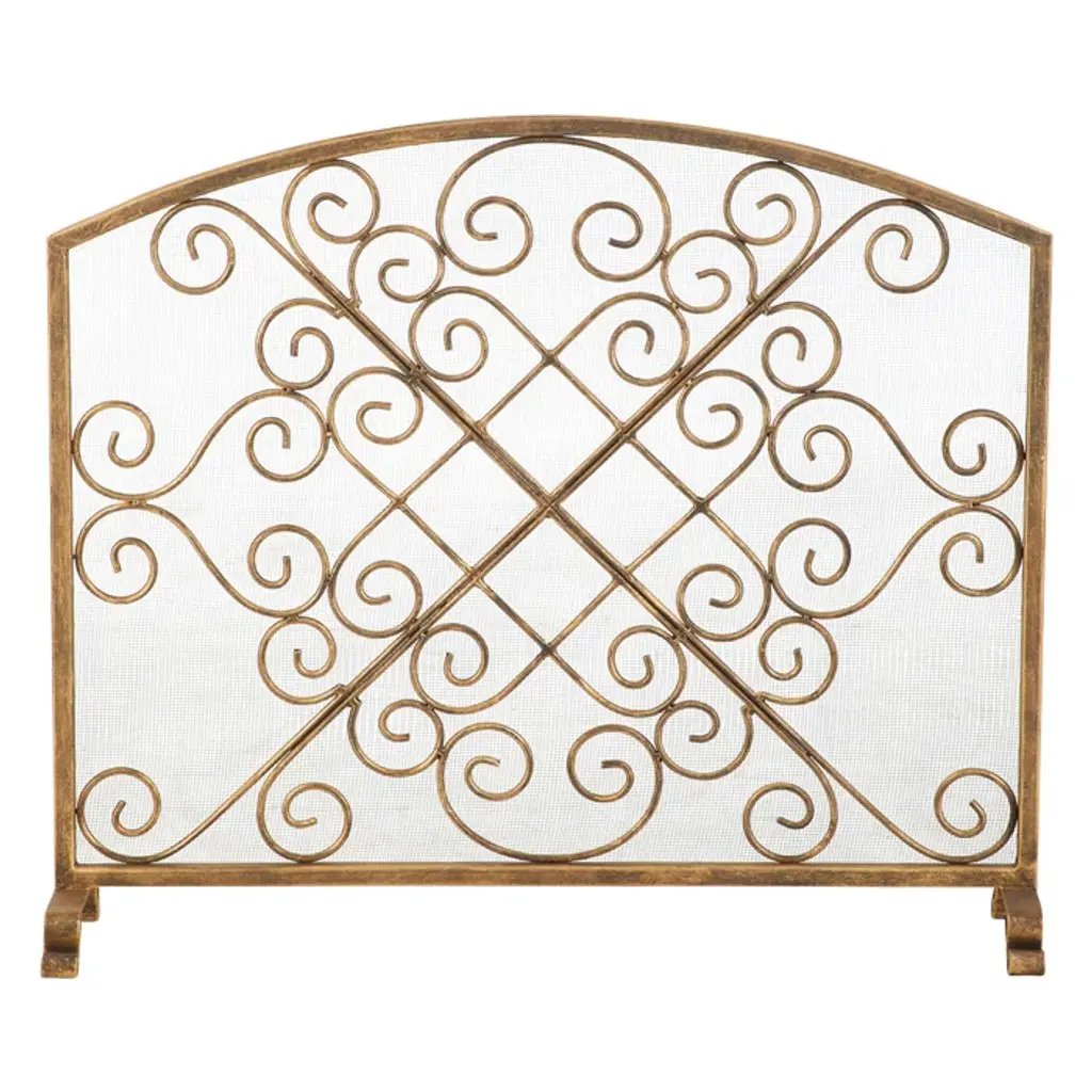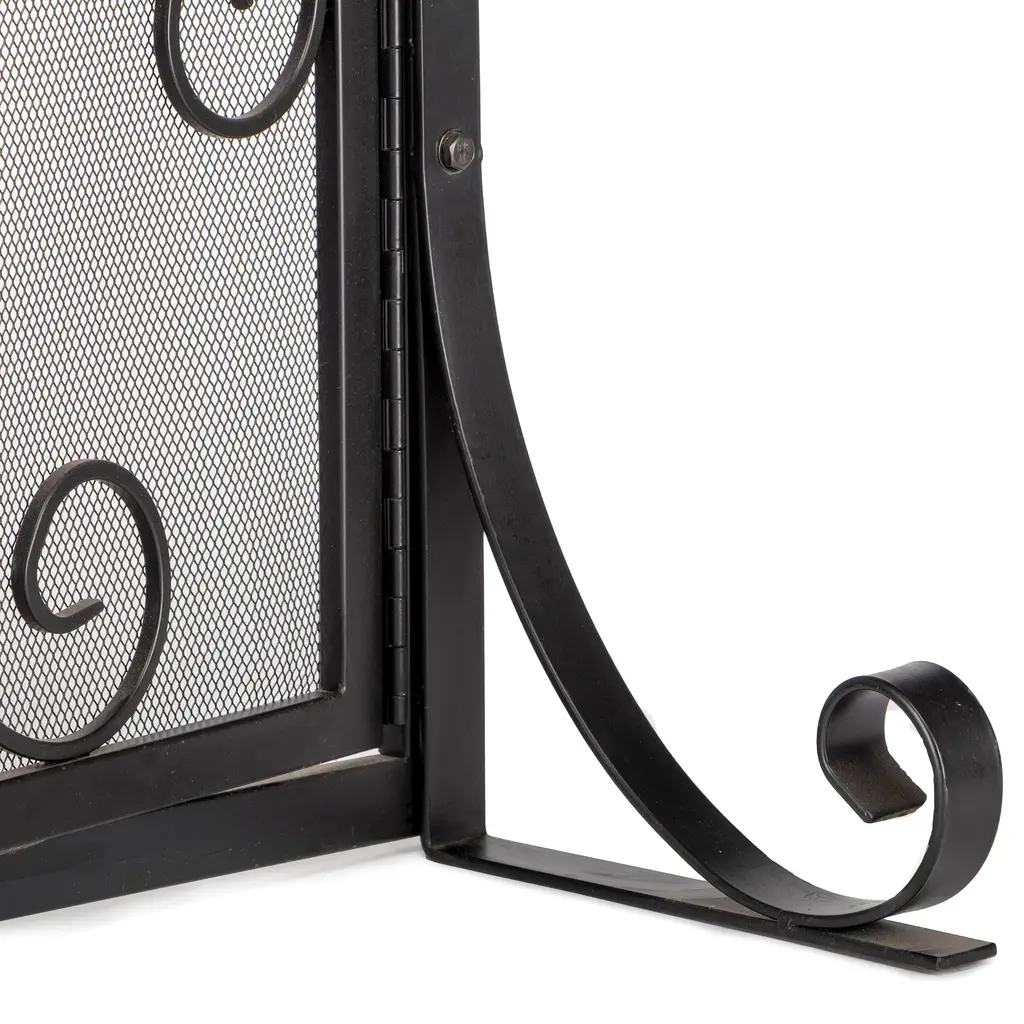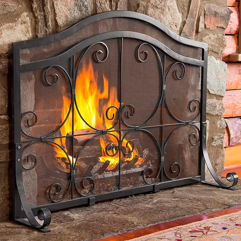 Ornamental scrollwork in solid wrought iron sets our exclusive Crest Flat Guard Fireplace Screen apart. Each quality-crafted piece has a sturdy steel frame with a long-lasting powder-coat finish. Subtle hand-burnished highlights add distinction to your hearth, with or without a fire. Adjustable back feet to fit any firebox opening or uneven hearth. Steel mesh screening keeps sparks contained. Easy assembly. Dimensions are approximate.