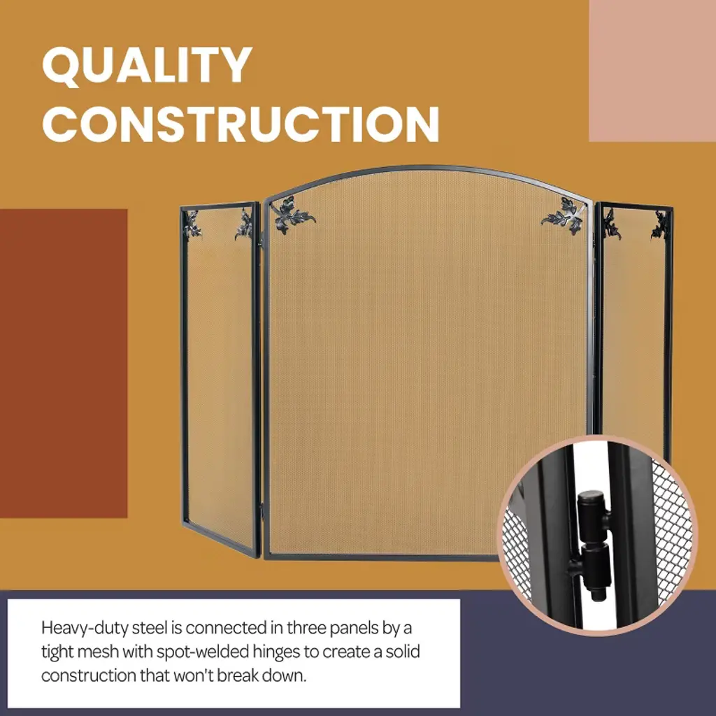 Keep your family, pets, furniture, and home protected from embers and sparks with the Fireplace Screens by Lavish Home. This fireplace cover features 3 panels made of heat-resistant steel for safe handling and tightly woven fireplace screen mesh that acts as a spark guard to help prevent embers and ash from escaping. Use the decorative screen panels in front of any indoor or outdoor fireplace, as they have a powder-coated finish for long-lasting use.