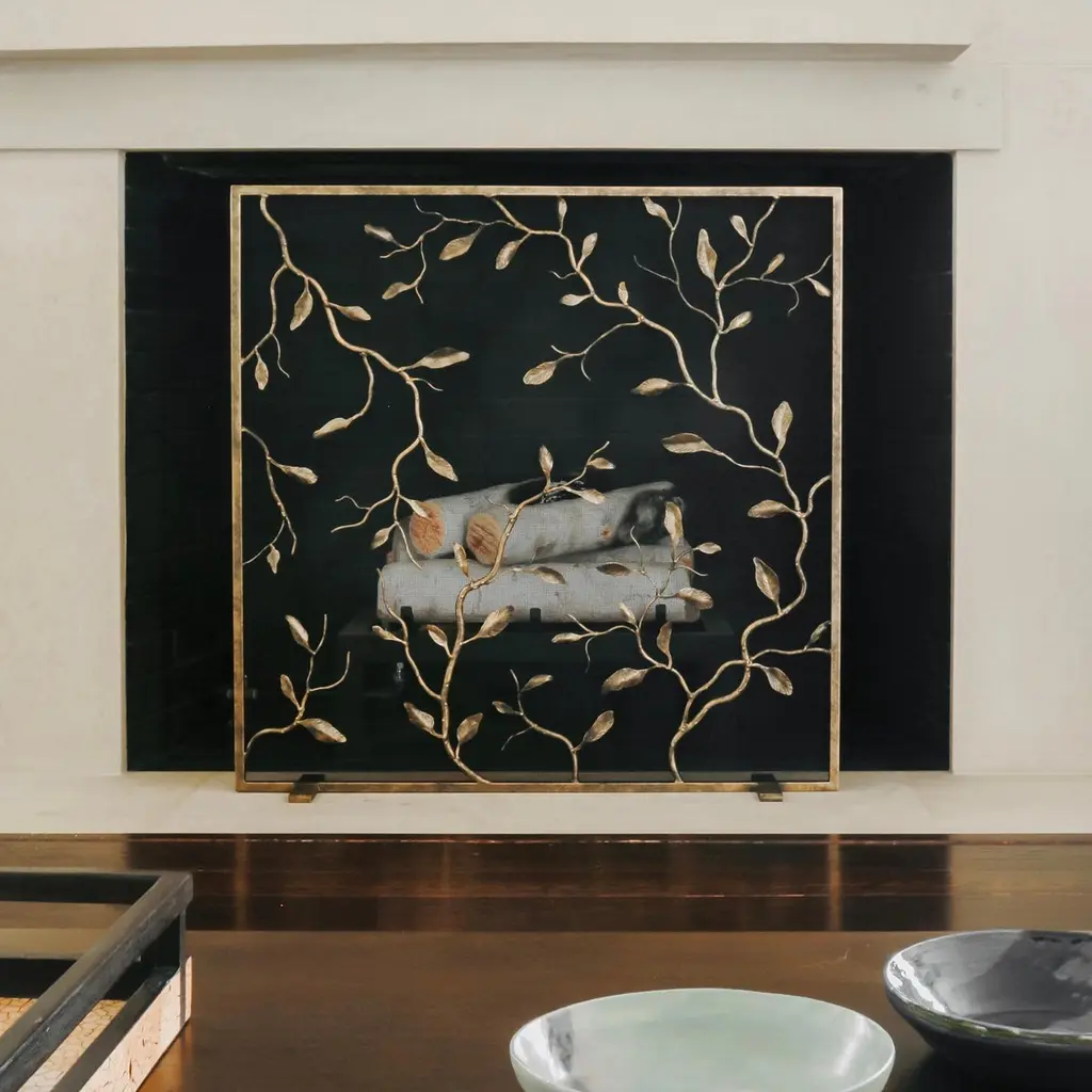 Inspired by the delicate beauty of crinkled autumn leaves, the Lennox fireplace screen adds a seasonally warm character to home's coziest spot: the fireplace. The beauty of texture created by hand comes across in this one of a kind design, with no two turning out exactly the same. Lennox comes with a wire mesh backing in the standard design and can be customized with glass upon request. In your choice of eight finishes, Lennox features a classic leaf design with hand forged details, reflecting our appreciation for artistry and techniques from traditional craft. This design incorporates an elegant silhouette with hand-formed details like polished shapes and textures. The result, both modern and timeless, adds a luxurious layer to the fireplace.Each piece is unique, with slight variations, due to the artisan nature of our handcrafted finishing process. Handmade in the U.S.A., it ships in 6-8 weeks.