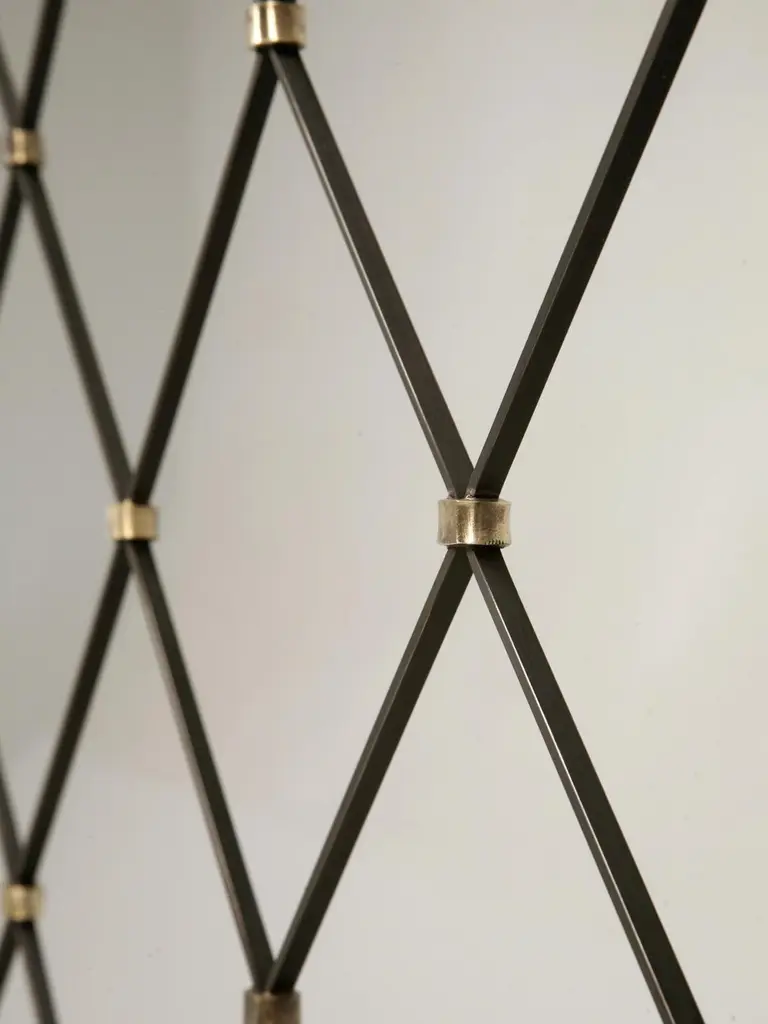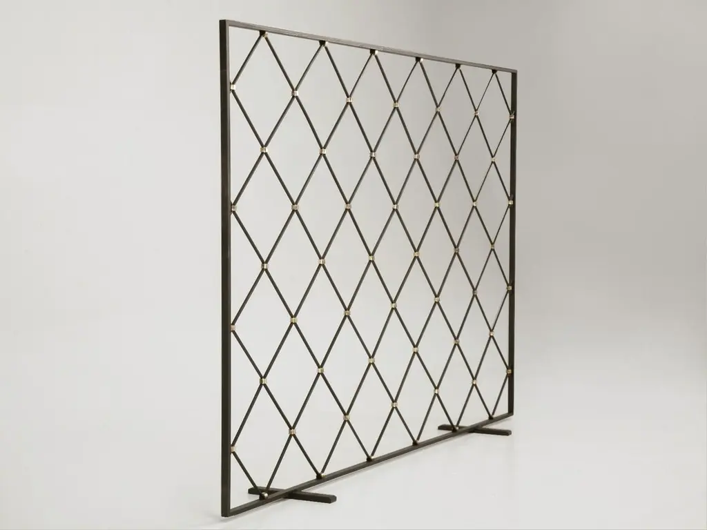 Mid Century Modern Custom Handmade Steel Fireplace Screen With Brass Fittings