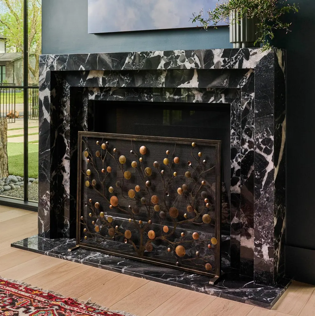 With its branching tree of life silhouette and richly patinated discs, the Origin Fireplace Screen makes a bold, sculptural statement. Each disc is hand-finished, offering unique variations in tone and texture that bring depth and character to the piece. The asymmetry feels deliberate yet effortless — a nod to the unpredictable beauty of nature reimagined through a mid-century modern lens. Captivating and expressive, Origin fits seamlessly into interiors that embrace organic modern design, layered textures, and artistic detail. It's not just a functional fireplace screen — it's a curated focal point that brings warmth, movement, and individuality to any space.PATINA WILL VARYMade in the United States by expert craftsmen, our screens are designed to fit seamlessly in with any setting. Each piece is unique, with slight variations, due to the artisan nature of our hand-applied finishing process. Handmade in the U.S.A., it ships in 6-8 weeks.
