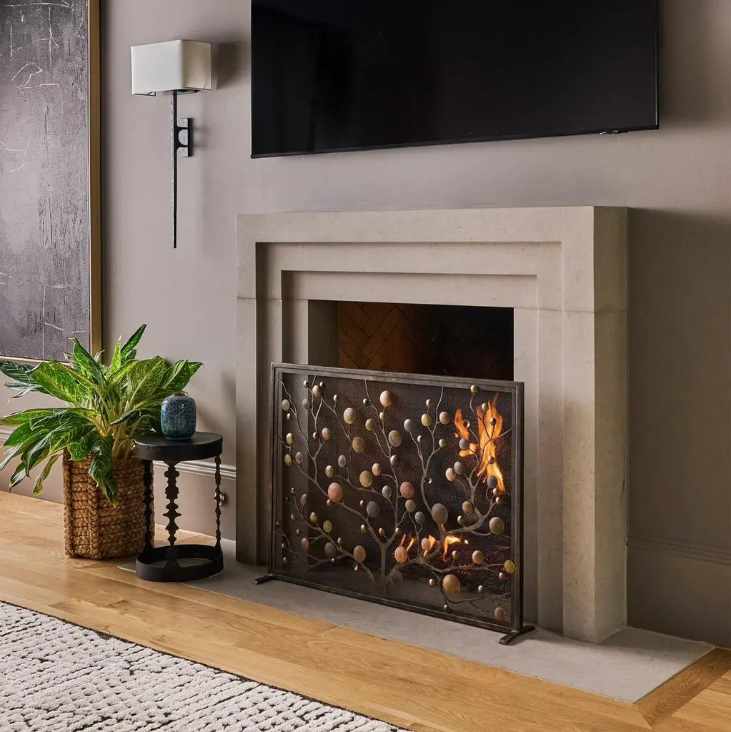 With its branching tree of life silhouette and richly patinated discs, the Origin Fireplace Screen makes a bold, sculptural statement. Each disc is hand-finished, offering unique variations in tone and texture that bring depth and character to the piece. The asymmetry feels deliberate yet effortless — a nod to the unpredictable beauty of nature reimagined through a mid-century modern lens. Captivating and expressive, Origin fits seamlessly into interiors that embrace organic modern design, layered textures, and artistic detail. It's not just a functional fireplace screen — it's a curated focal point that brings warmth, movement, and individuality to any space.PATINA WILL VARYMade in the United States by expert craftsmen, our screens are designed to fit seamlessly in with any setting. Each piece is unique, with slight variations, due to the artisan nature of our hand-applied finishing process. Handmade in the U.S.A., it ships in 6-8 weeks.