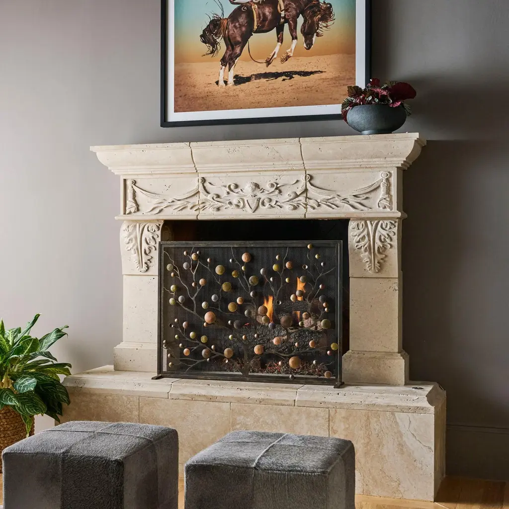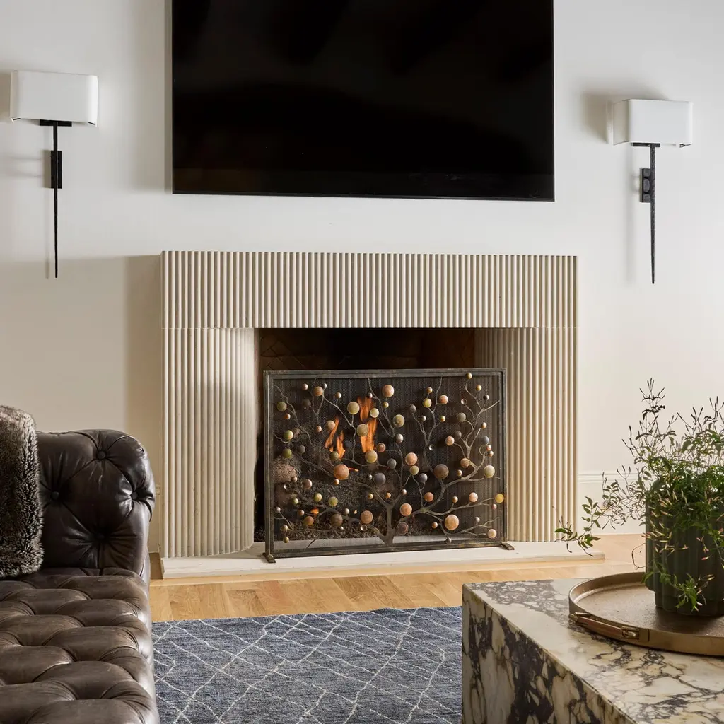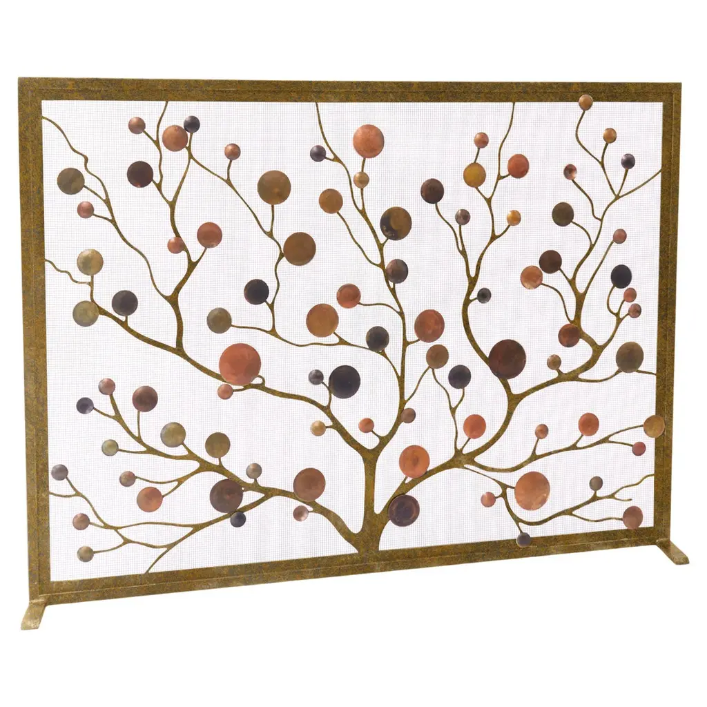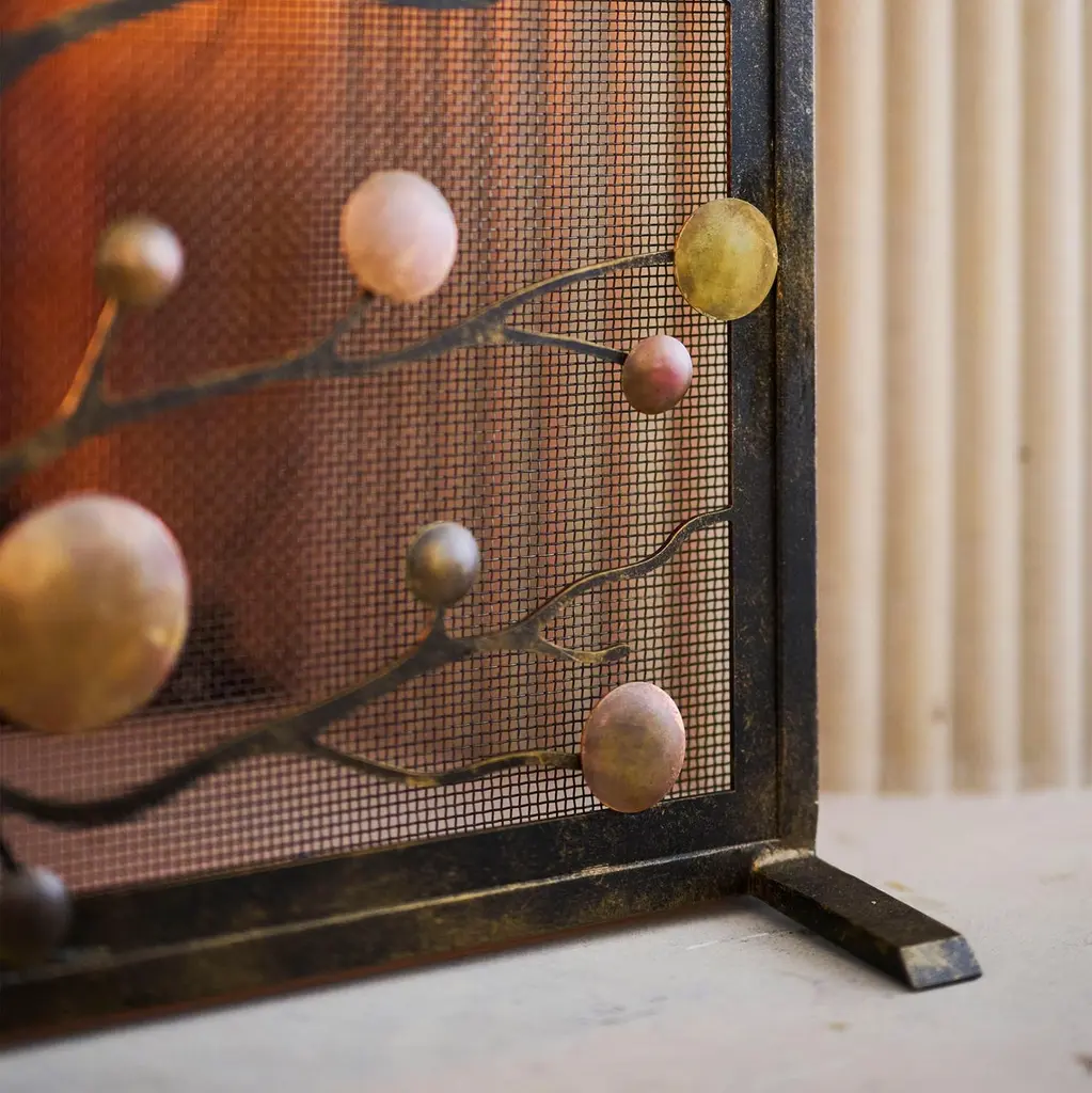 With its branching tree of life silhouette and richly patinated discs, the Origin Fireplace Screen makes a bold, sculptural statement. Each disc is hand-finished, offering unique variations in tone and texture that bring depth and character to the piece. The asymmetry feels deliberate yet effortless — a nod to the unpredictable beauty of nature reimagined through a mid-century modern lens. Captivating and expressive, Origin fits seamlessly into interiors that embrace organic modern design, layered textures, and artistic detail. It's not just a functional fireplace screen — it's a curated focal point that brings warmth, movement, and individuality to any space.PATINA WILL VARYMade in the United States by expert craftsmen, our screens are designed to fit seamlessly in with any setting. Each piece is unique, with slight variations, due to the artisan nature of our hand-applied finishing process. Handmade in the U.S.A., it ships in 6-8 weeks.