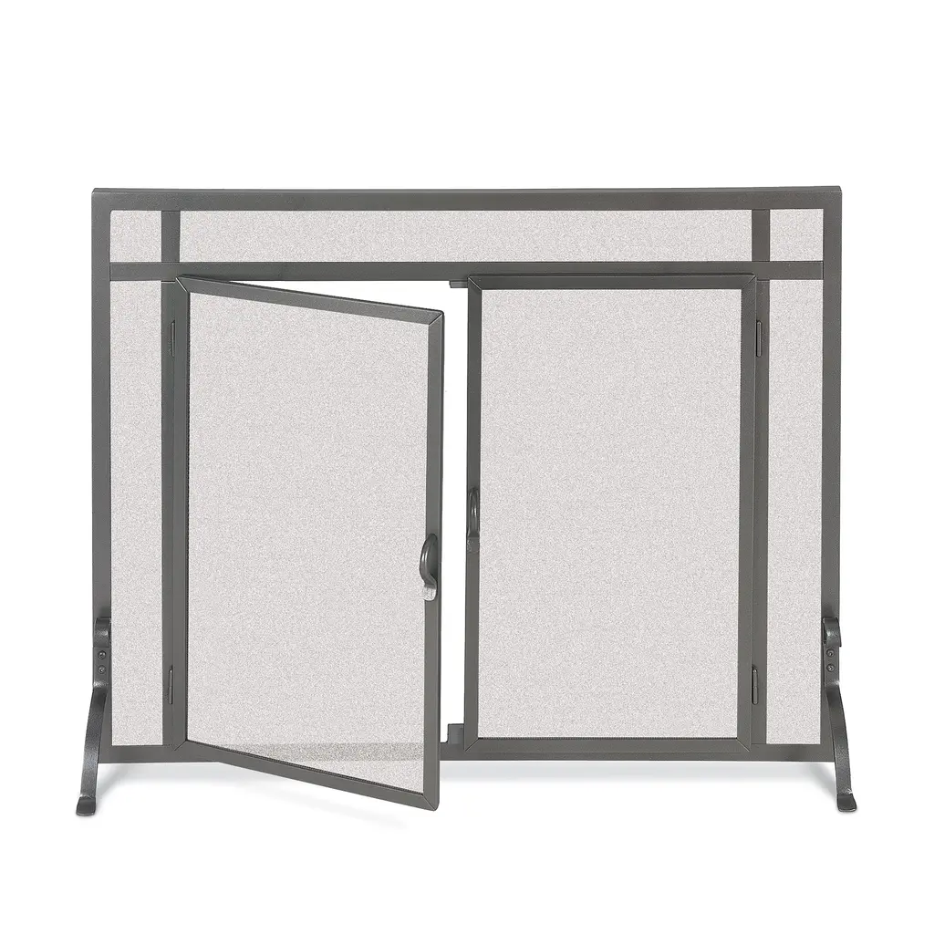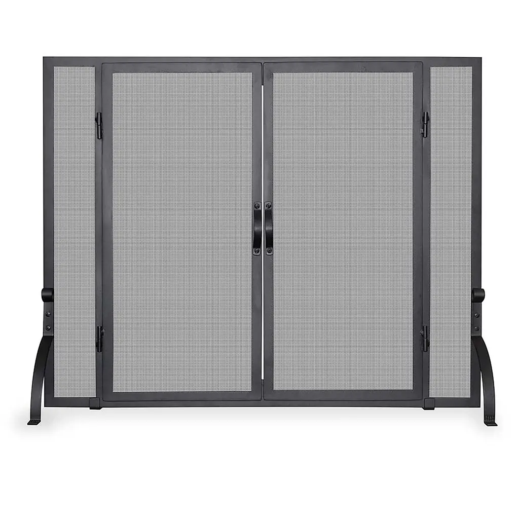Panacea Black/gray Matte Metal Fireplace Screen With Doors