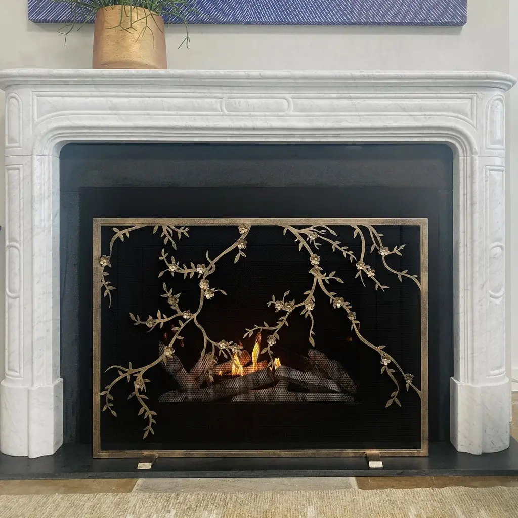 Introducing the Plum Blossom fireplace screen – an eye-catching design that combines the beauty of nature with the warmth of the hearth. Each made to order screen combines silhouetted branches with layered petals to create a playful and delicate dimensional design. Customizable in size and finish, it transforms your space into an inviting sanctuary, blending artistry with functionality. Inspired by the elegant, delicate beauty of plum blossoms opening in the spring, the Plum Blossom fireplace screen is made of forged iron flowers and buds. The flowers’ subtly textured petals form a soft and feminine look. Each detail is created by hand, then individually applied as a one-of-a-kind detail. This results in a singular work of art as no two screens will be exactly alike. The Sakura Fire Screen comes with a wire mesh backing to protect from stray embers.Made in the United States by expert craftsmen, our screens are designed to fit seamlessly in with any setting. Each piece is unique, with slight variations, due to the artisan nature of our hand-applied finishing process. Handmade in the U.S.A., it ships in 6-8 weeks.